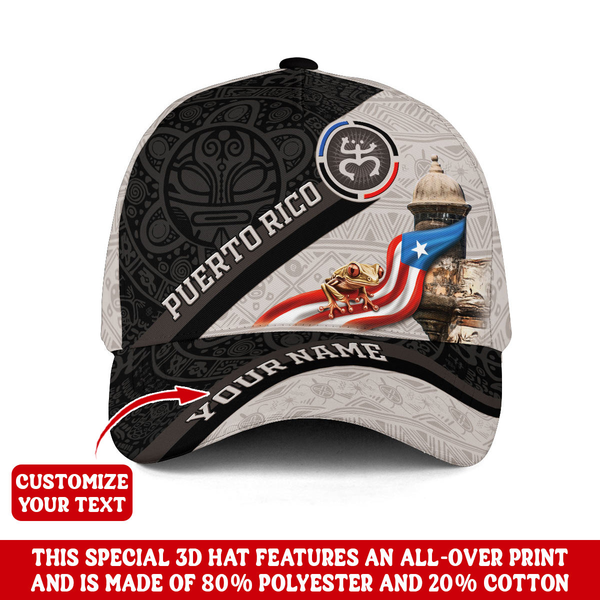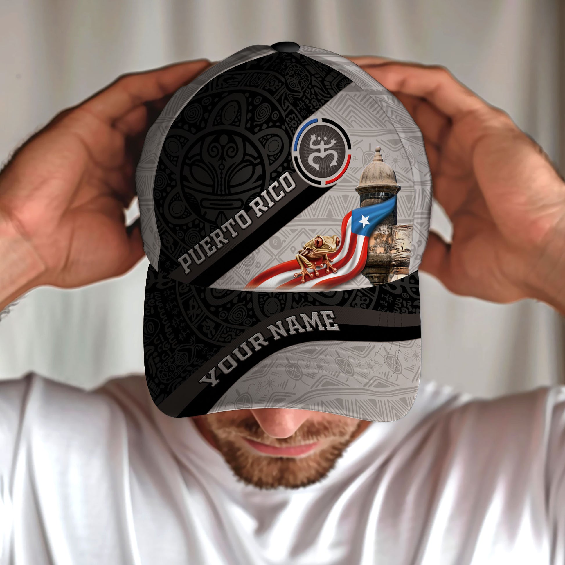 Puerto Rico Baseball Cap El Morro Coqui Frog Taino Custom Name Boricua Pride Hat