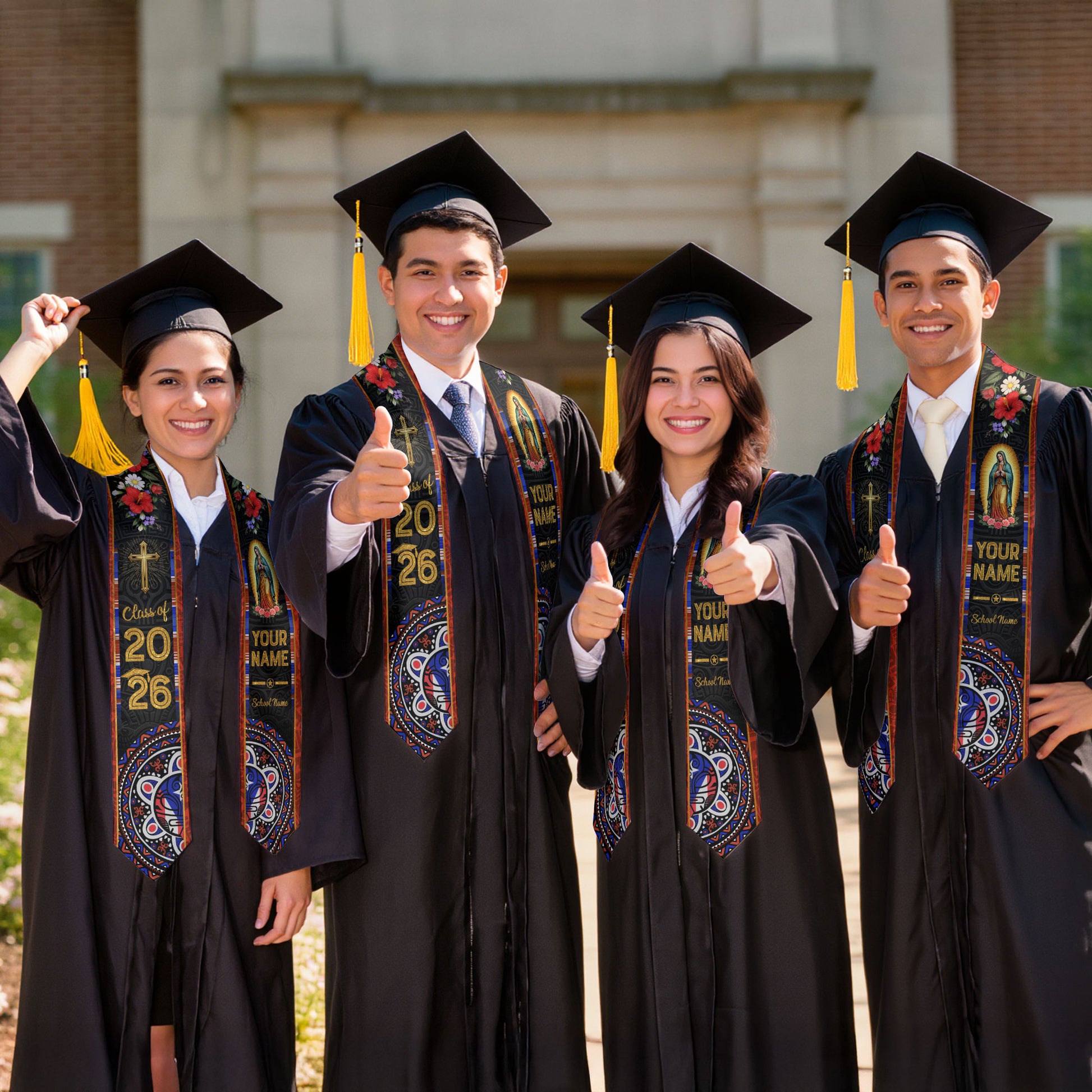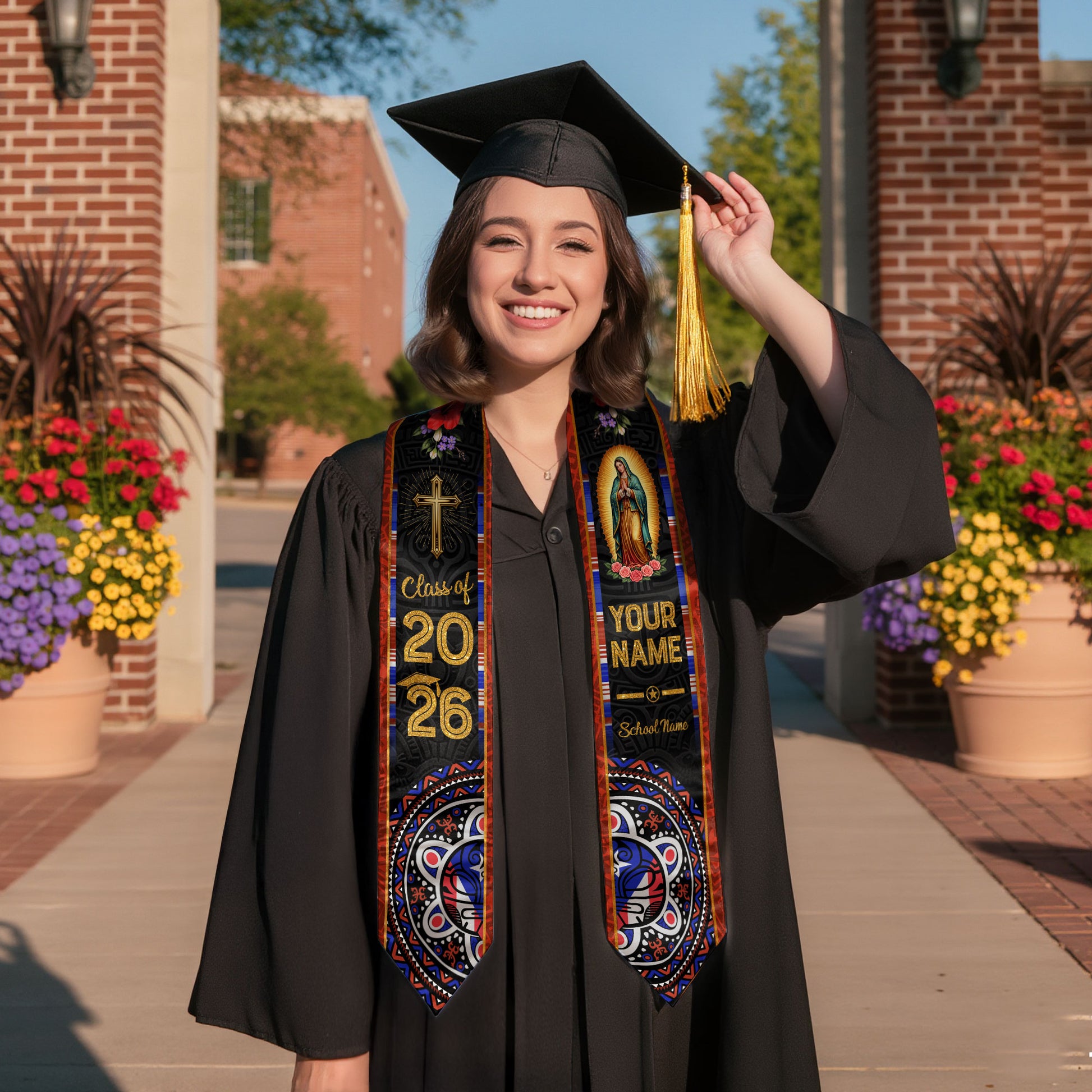 Custom Mexico Graduation Stole Class of 2026, Personalized Name Catholic Design