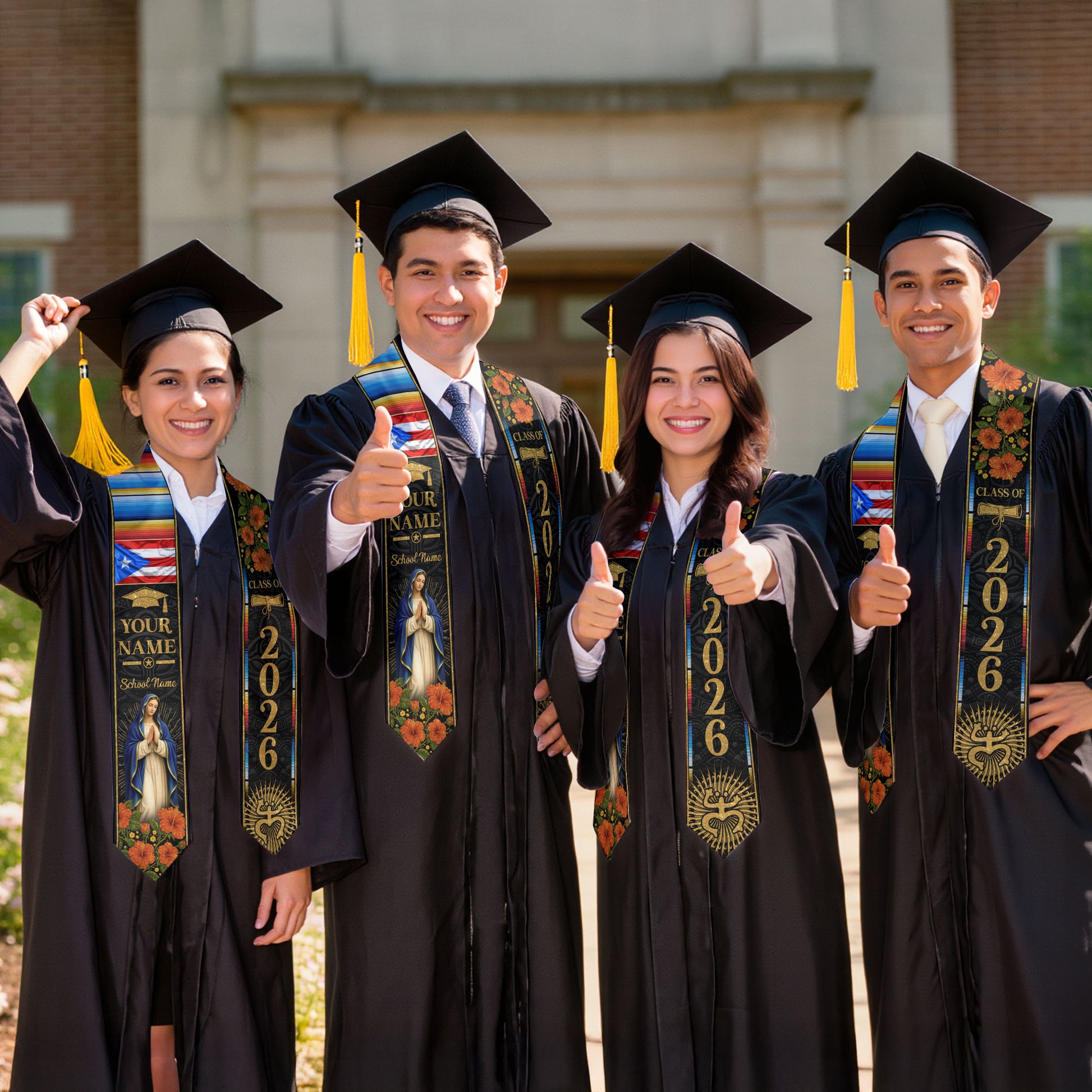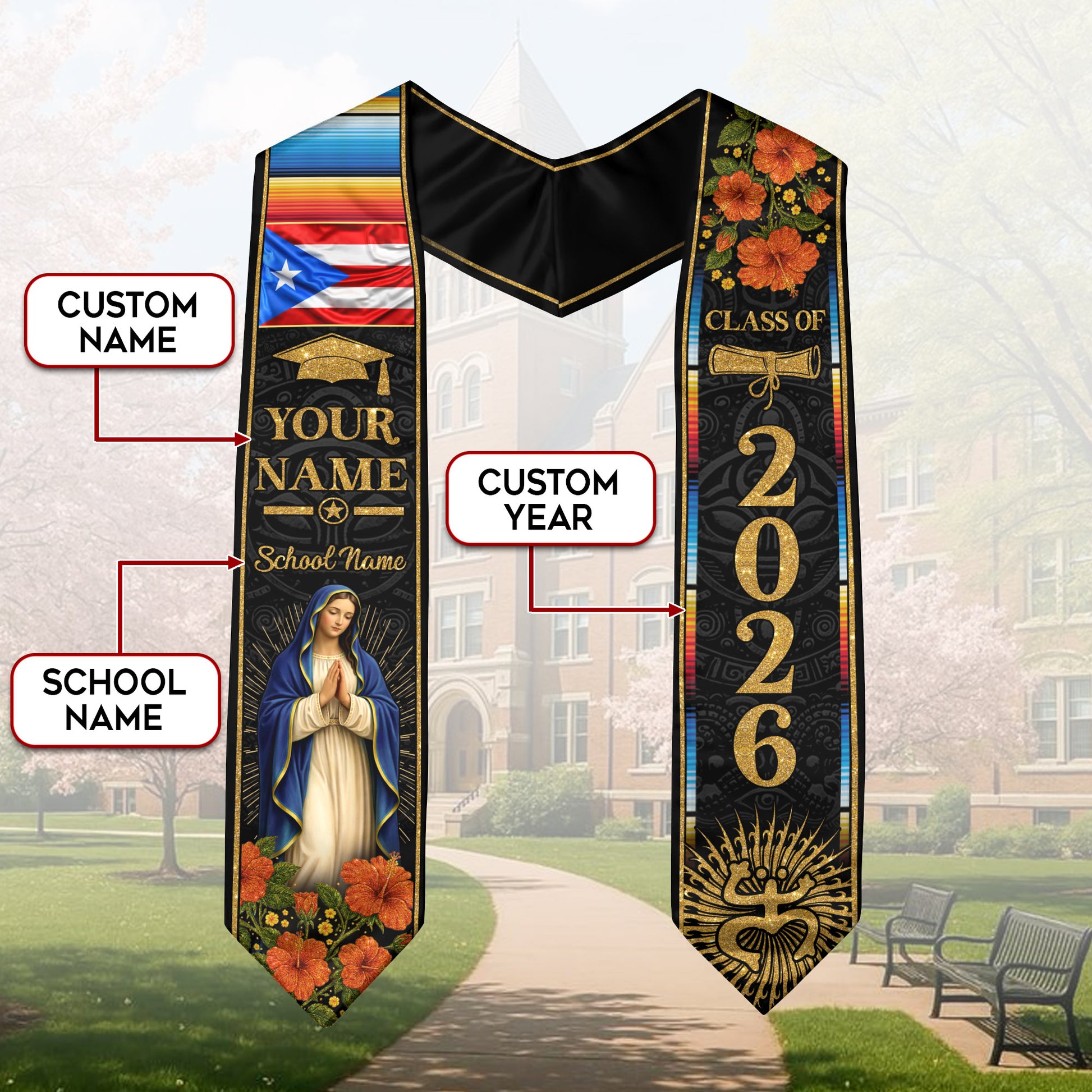Custom Puerto Rico Graduation Stole Class of 2026, Personalized Name & School Sash