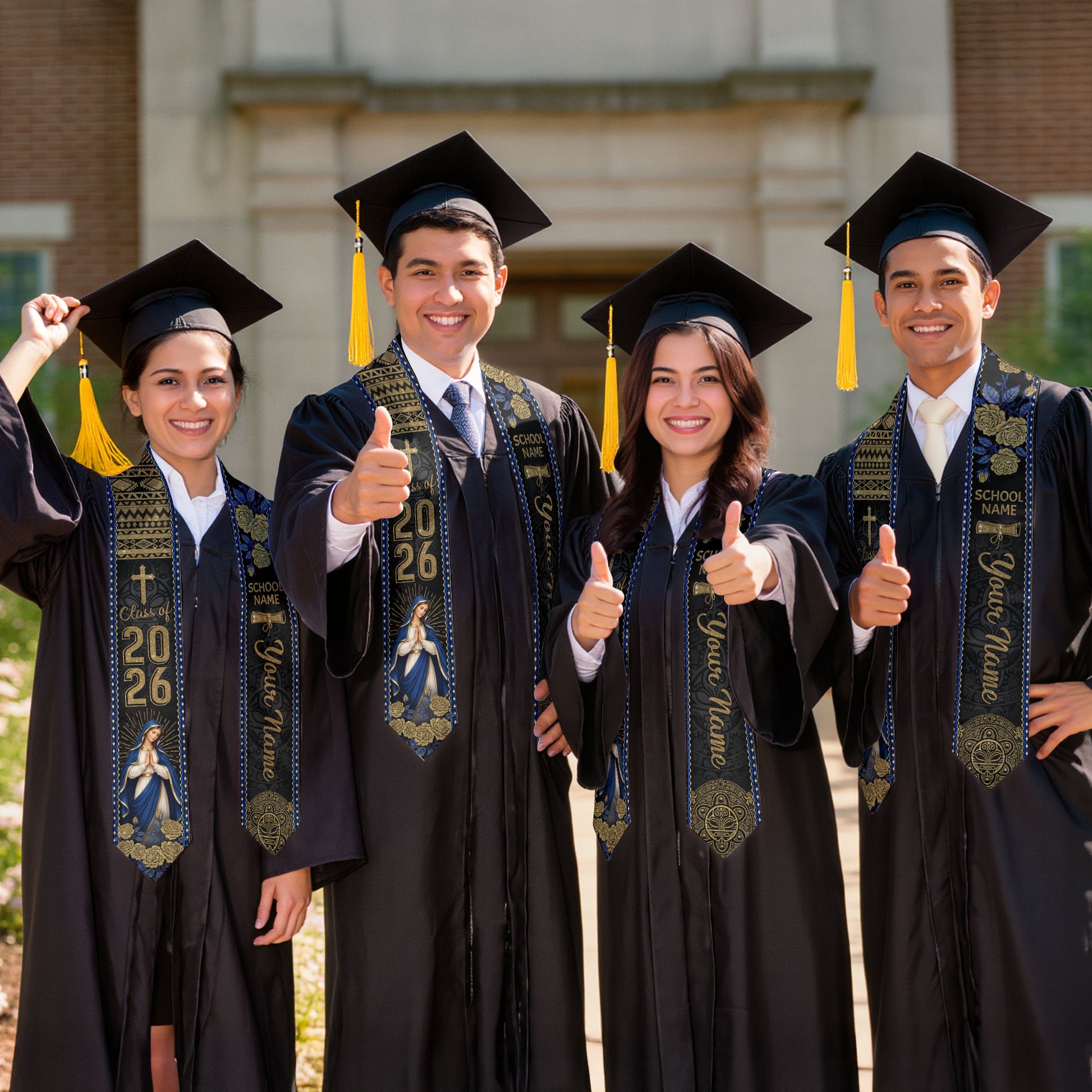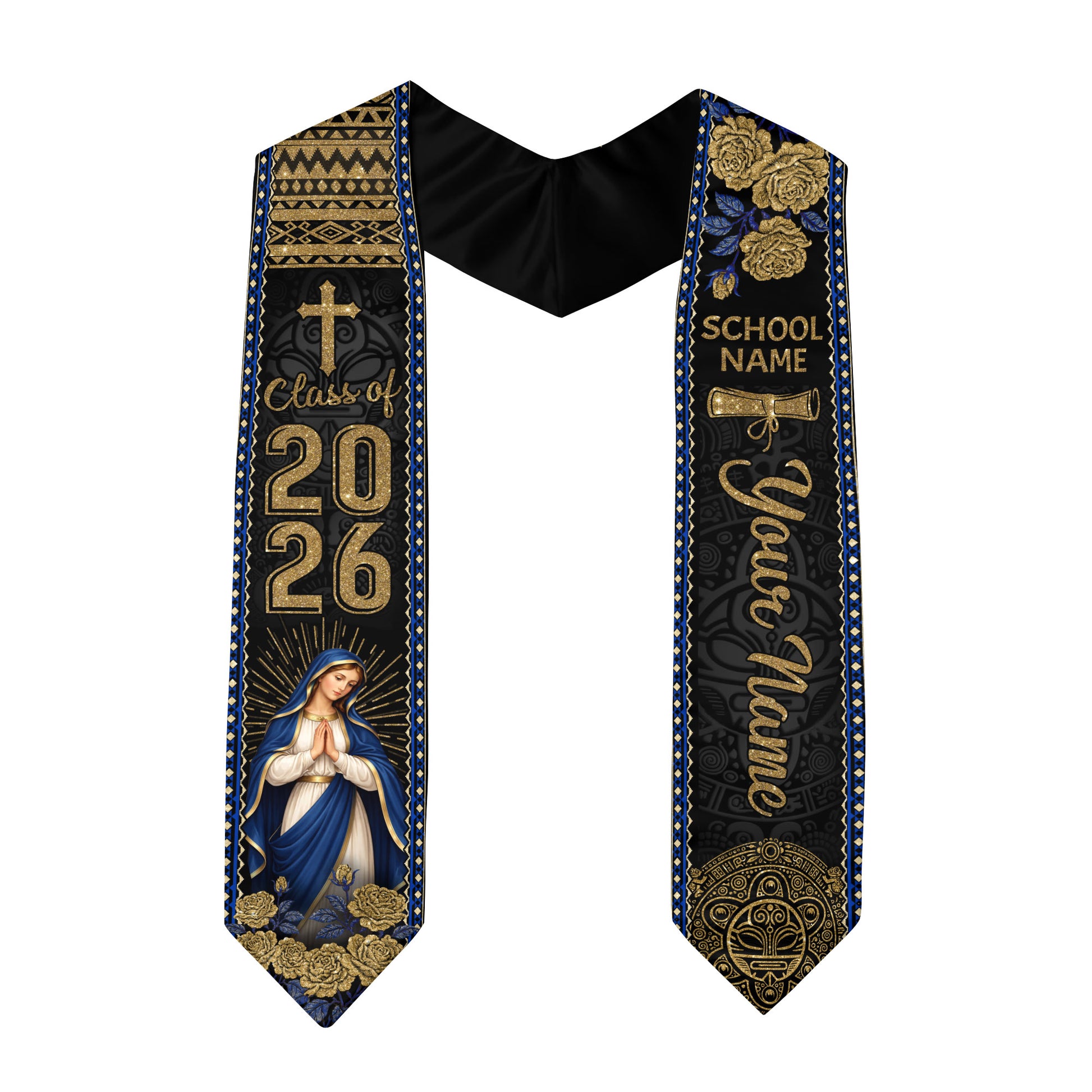 Mexico Graduation Stole Custom 2026 Virgin Mary Cross Aztec Sash Gift