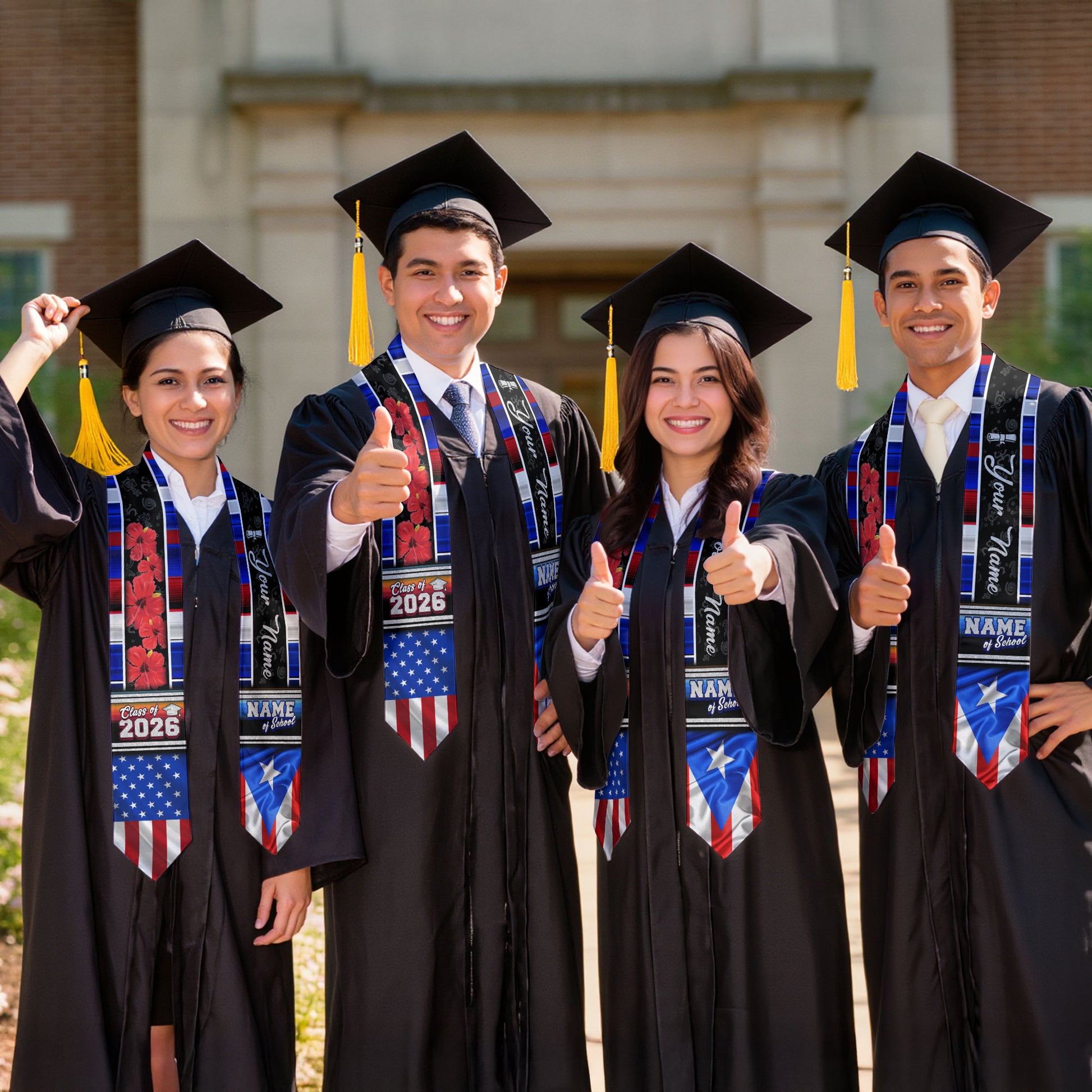Personalized Puerto Rican Graduation Stole 2026 Custom Name USA Flag Boricua Sash