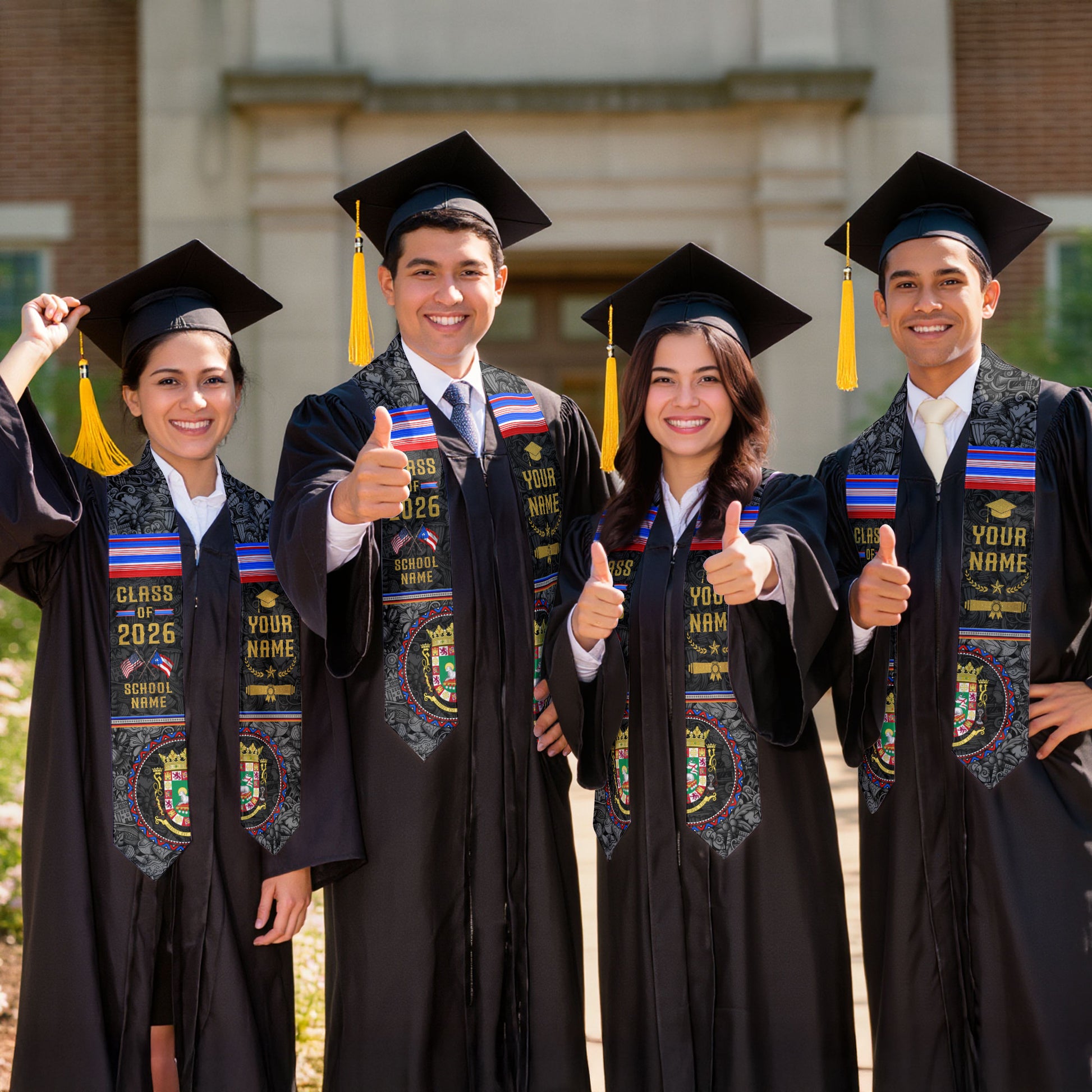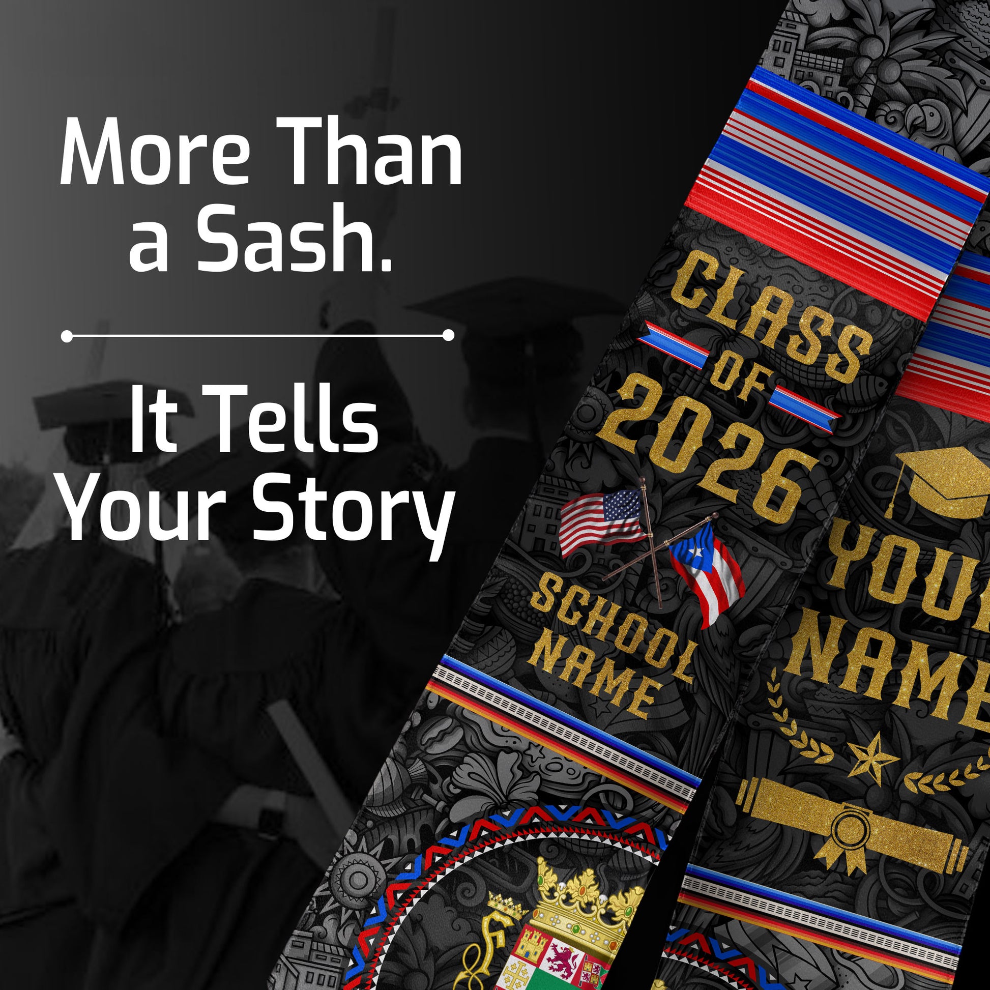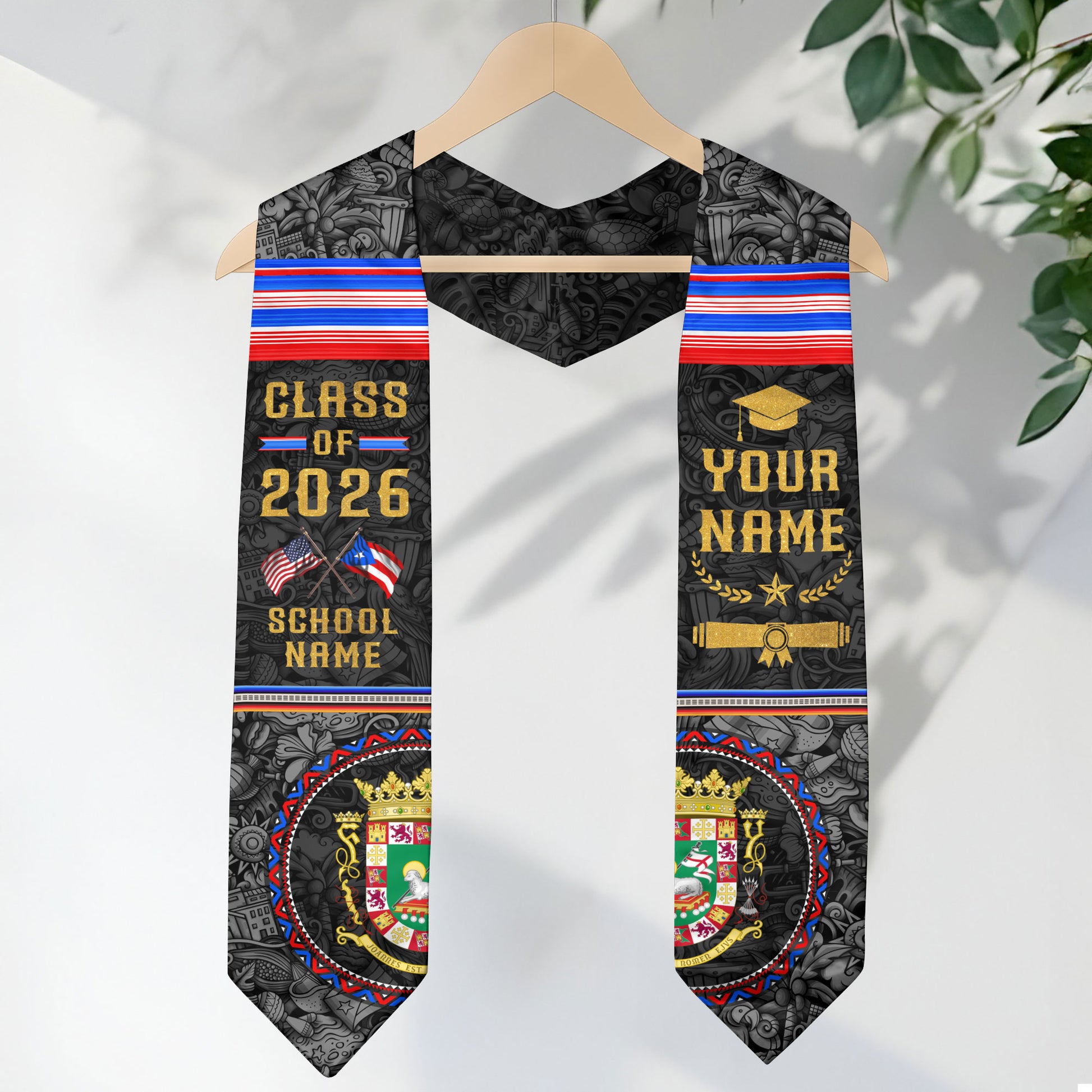 Personalized Puerto Rican Heritage Graduation Stole 2026 USA Flag Custom Name Sash