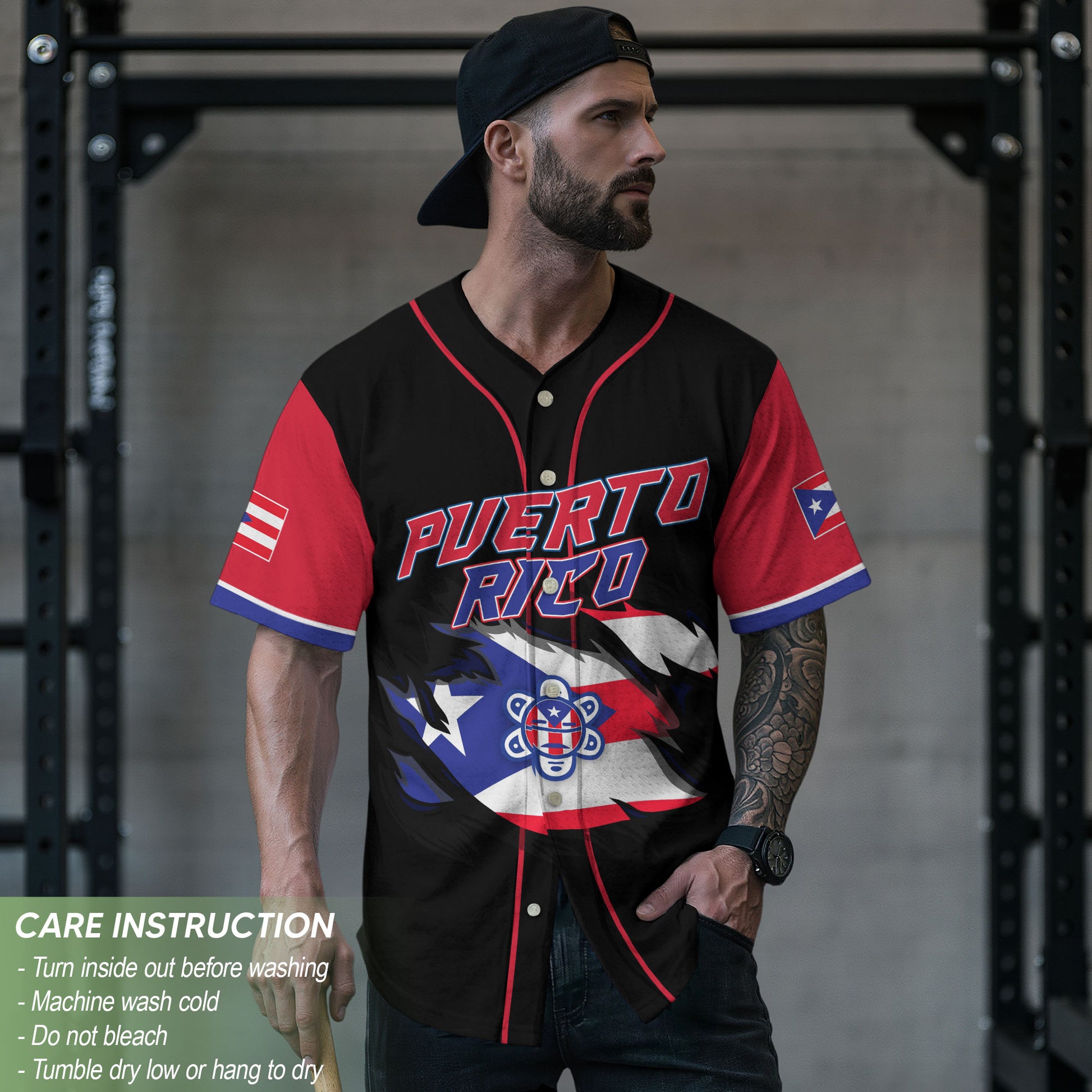 Puerto Rico Boricua Black Red Torn Flag Coqui Frog Heritage Baseball Jersey