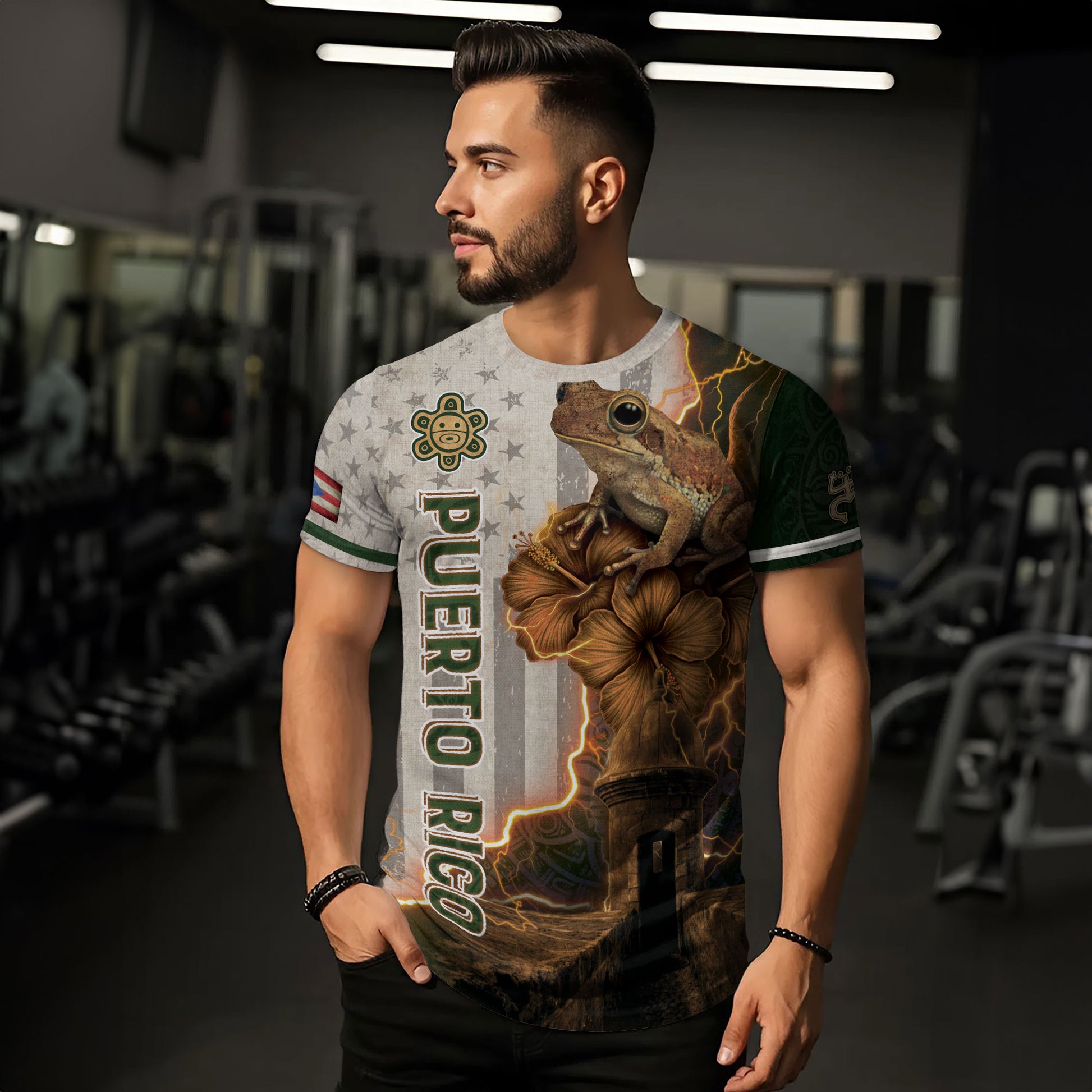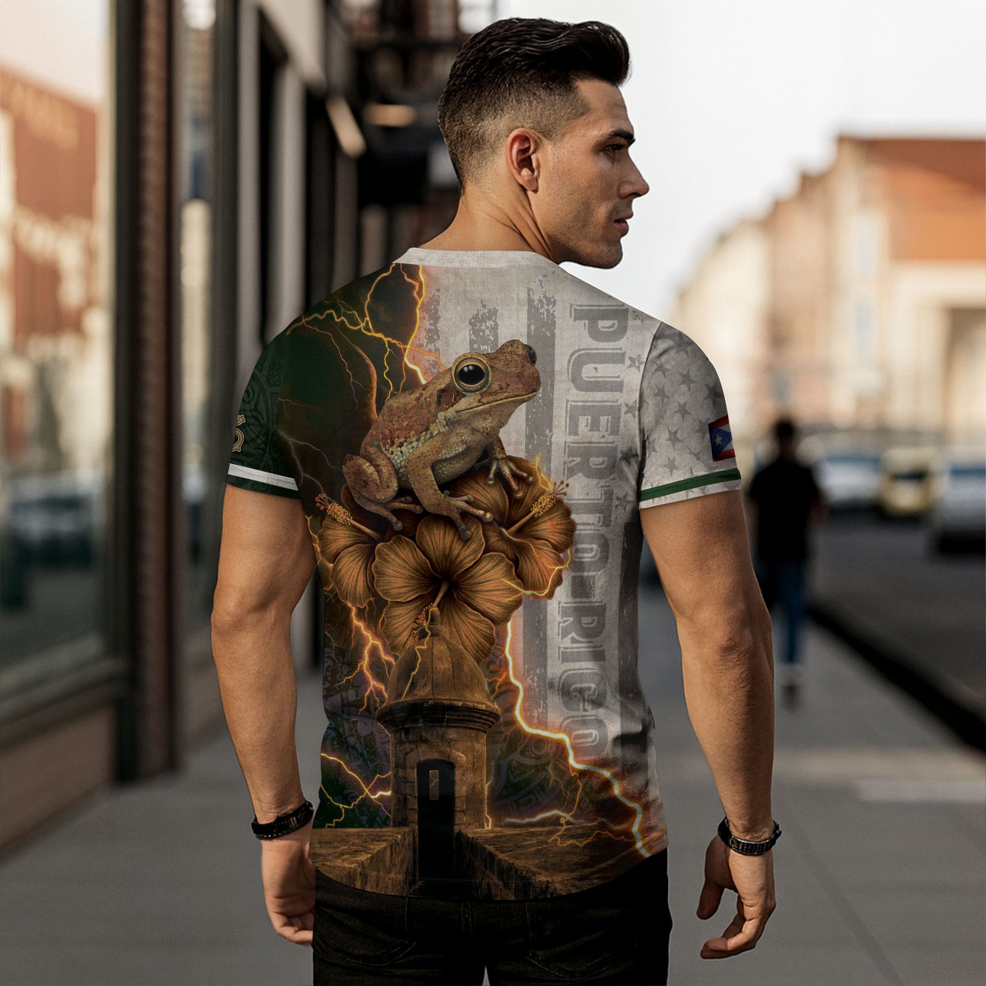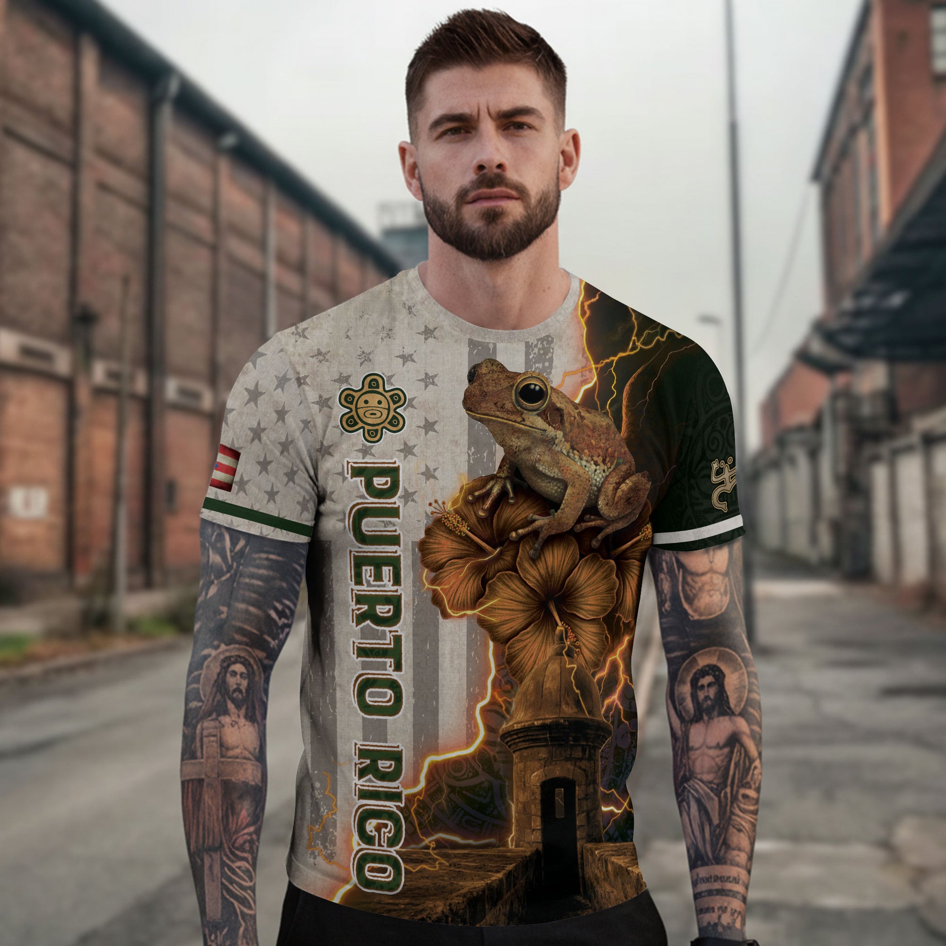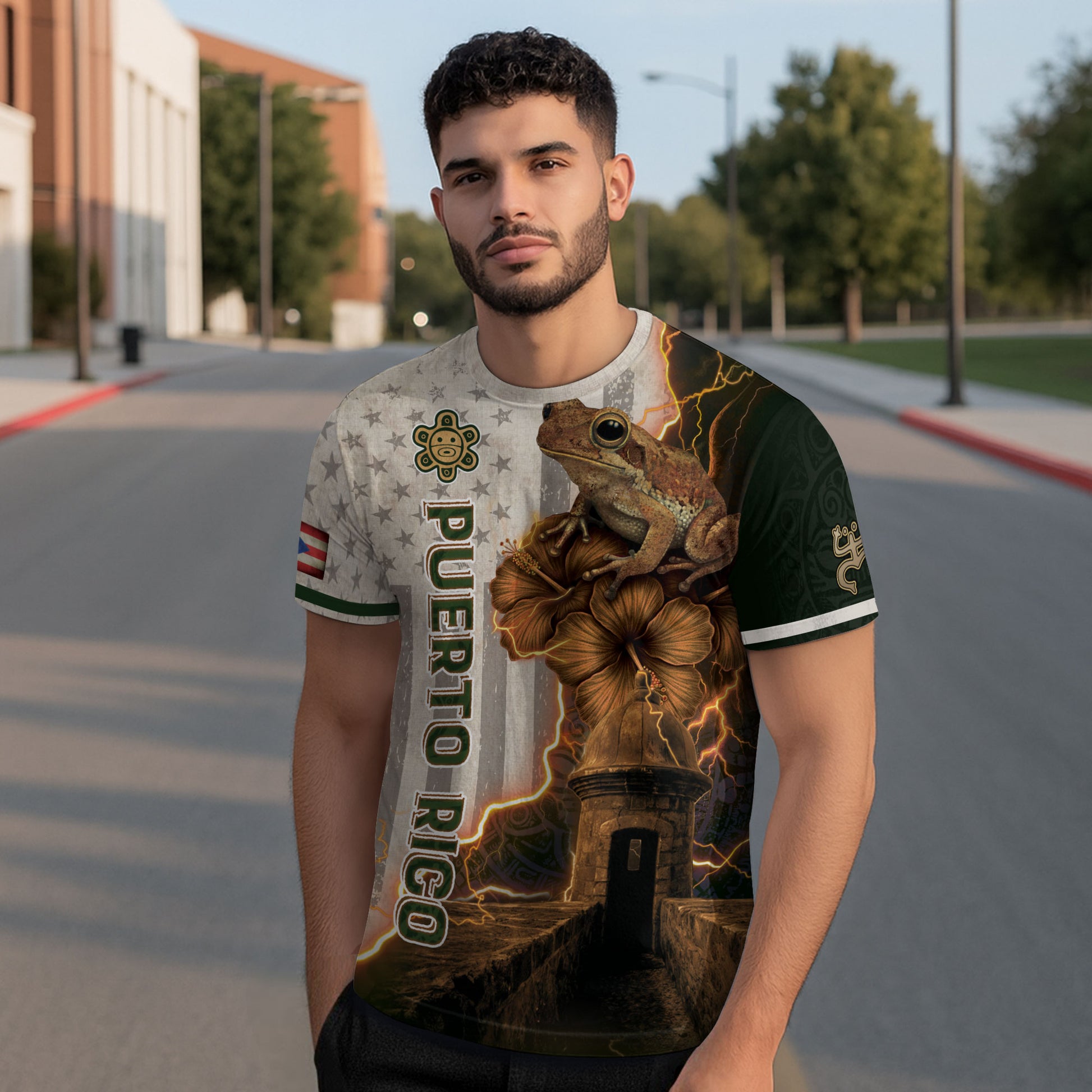 Puerto Rico Boricua Coqui Frog El Morro Lightning Beige Brown Green National Shirt