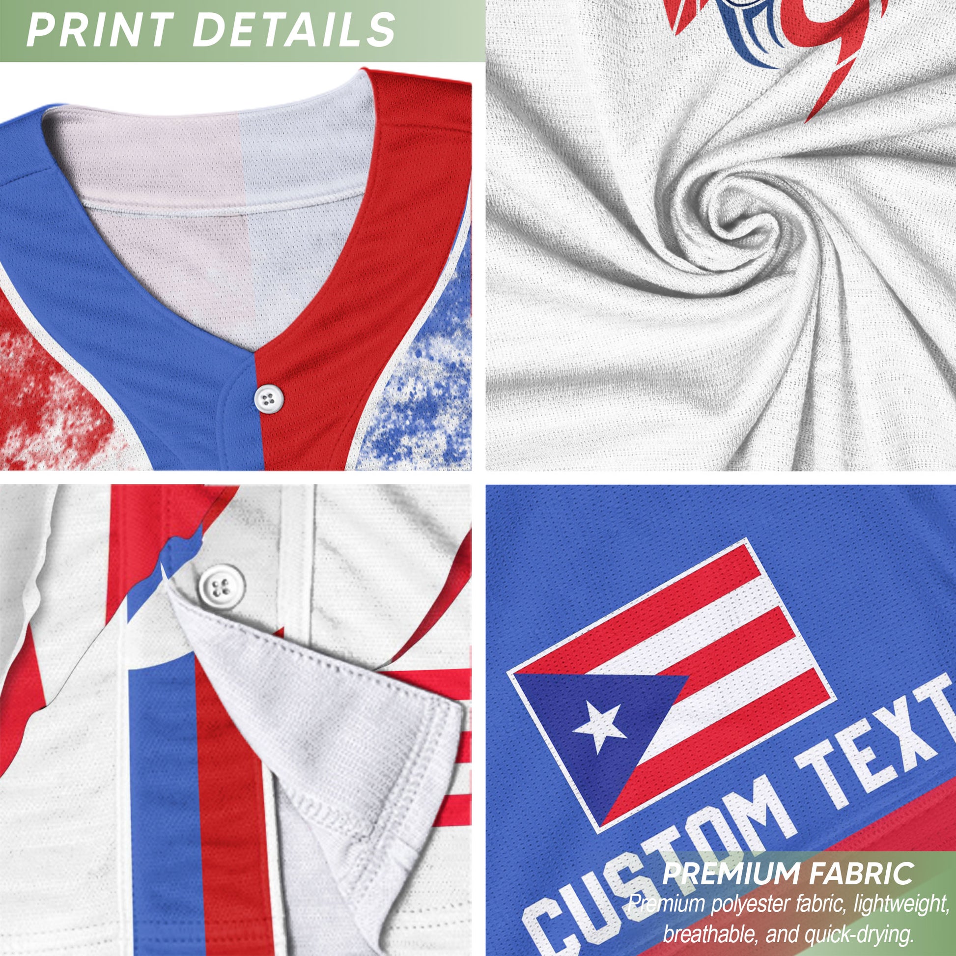Puerto Rico Boricua Flag White Red Blue Paint Splatter Graphic Baseball Jersey