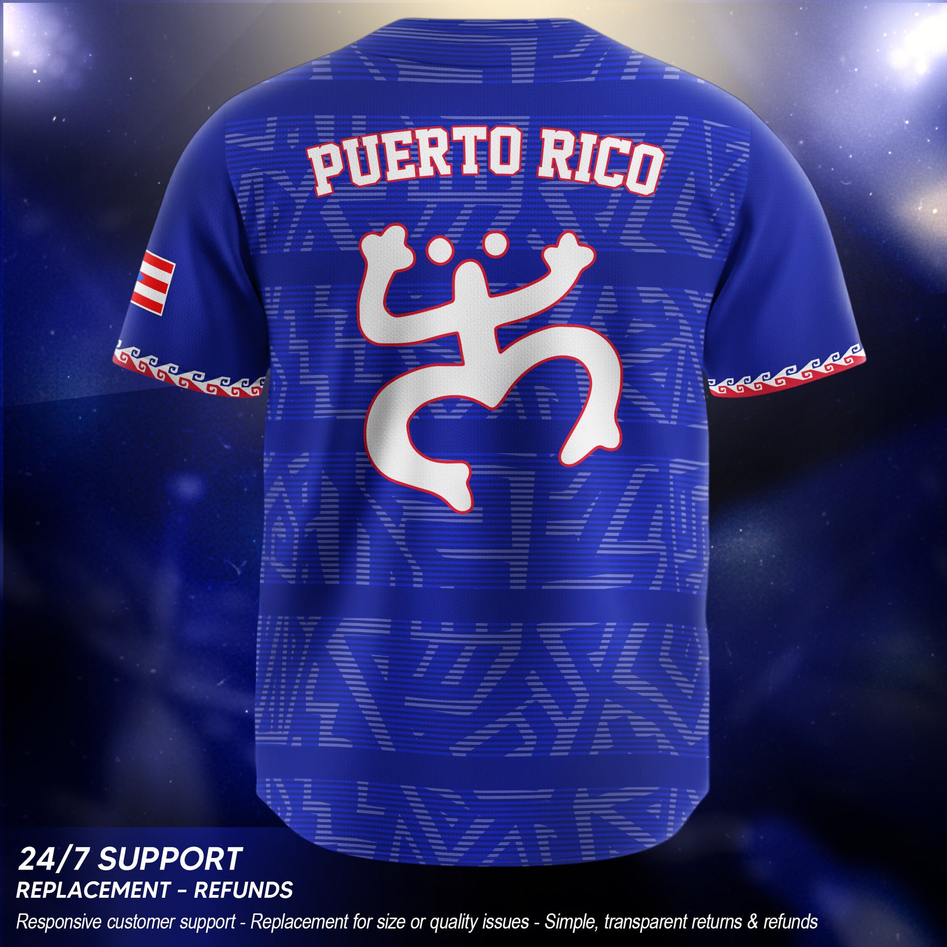 Puerto Rico Boricua Navy Royal Blue Taino Pattern Coqui Frog Baseball Jersey