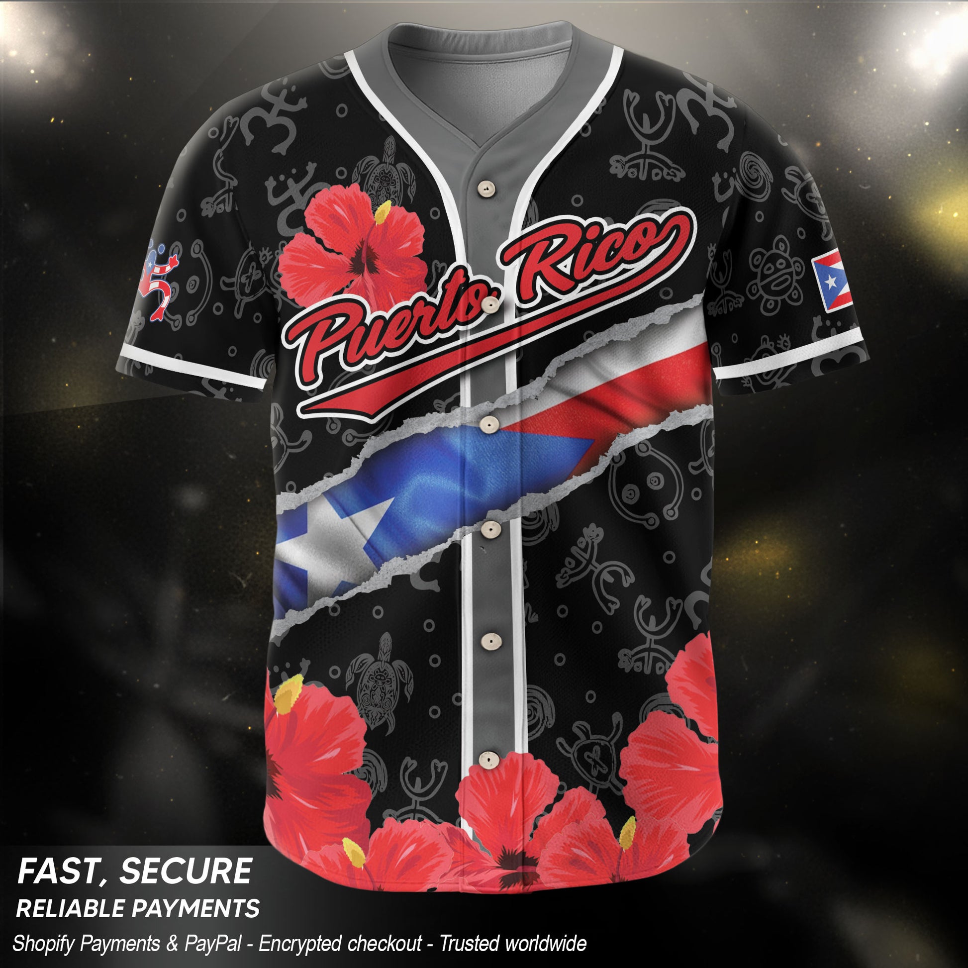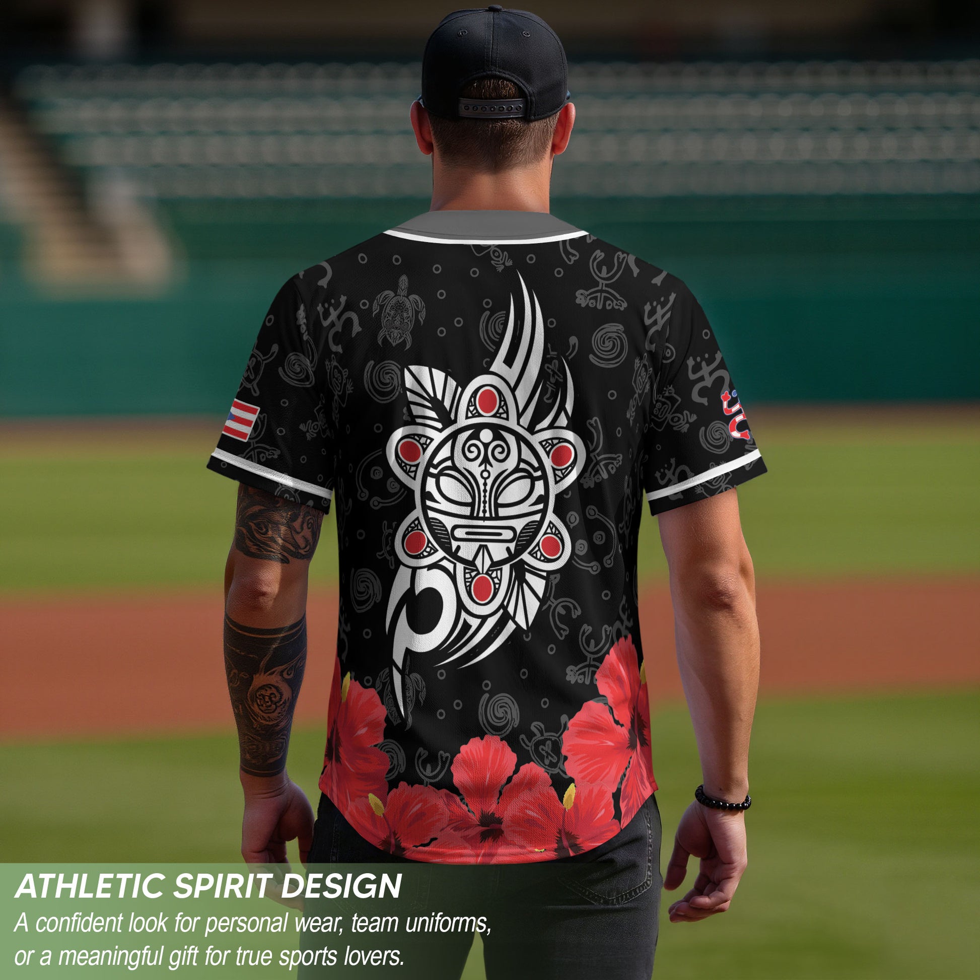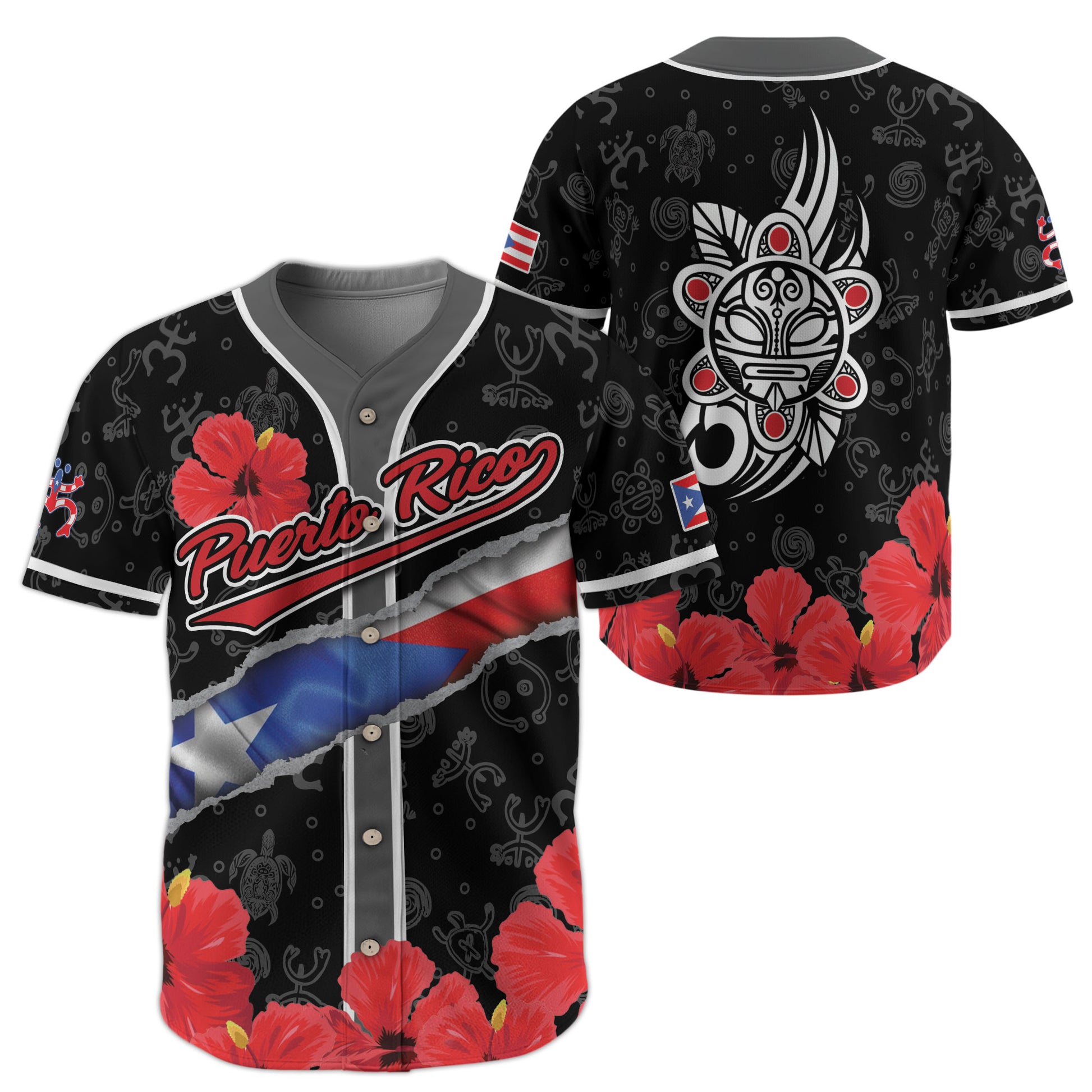 Puerto Rico Boricua Red Hibiscus Floral Flag Taino Heritage Baseball Jersey