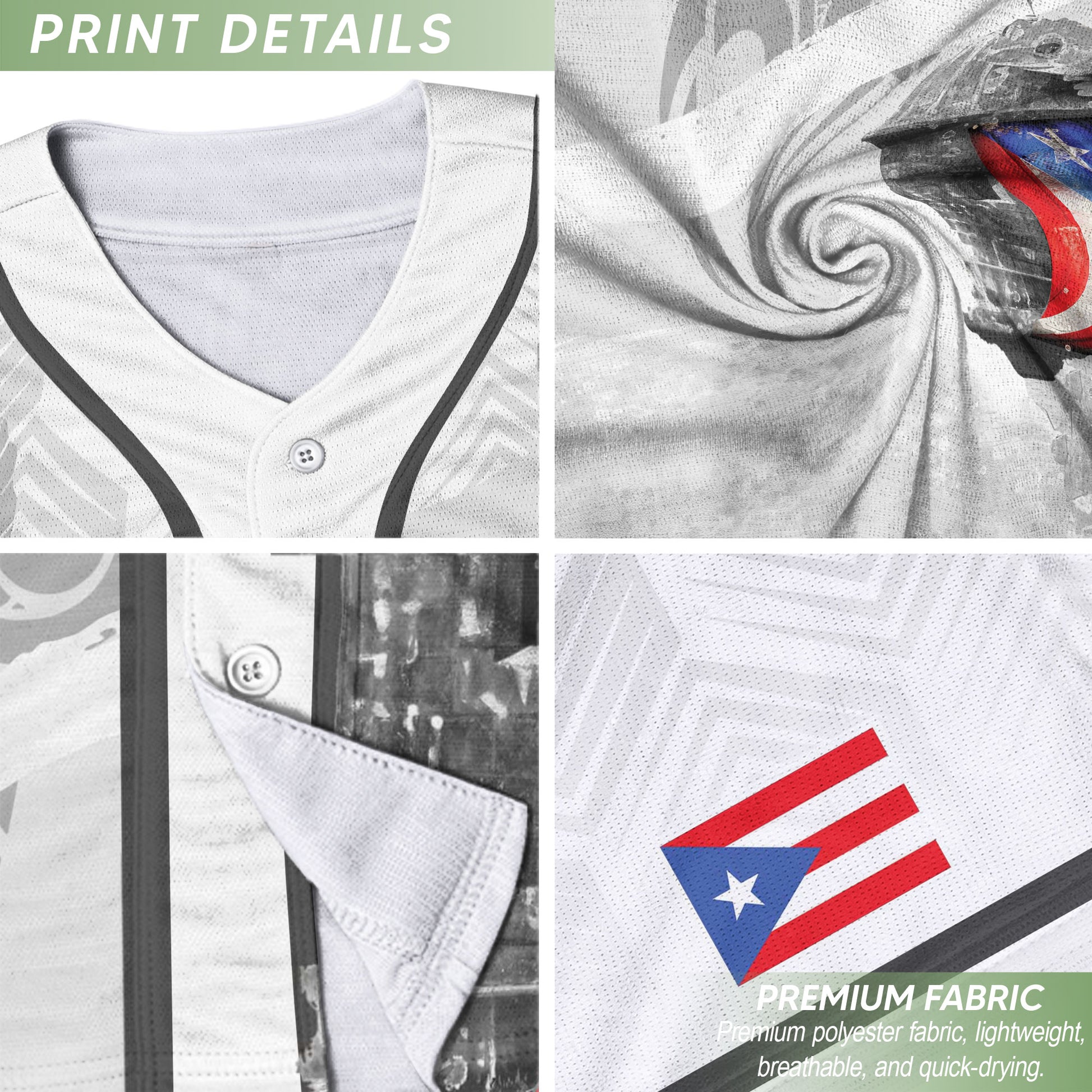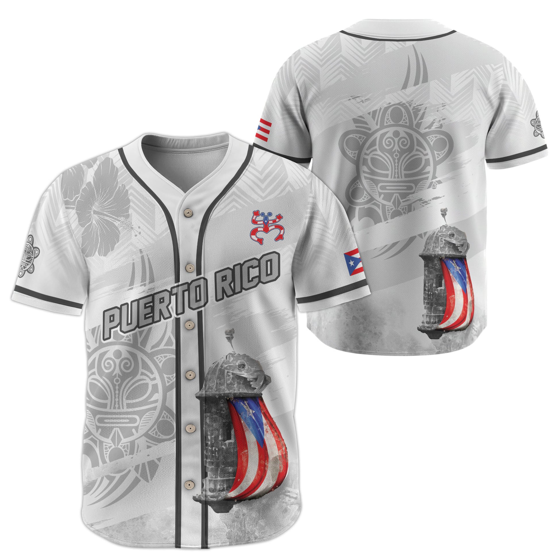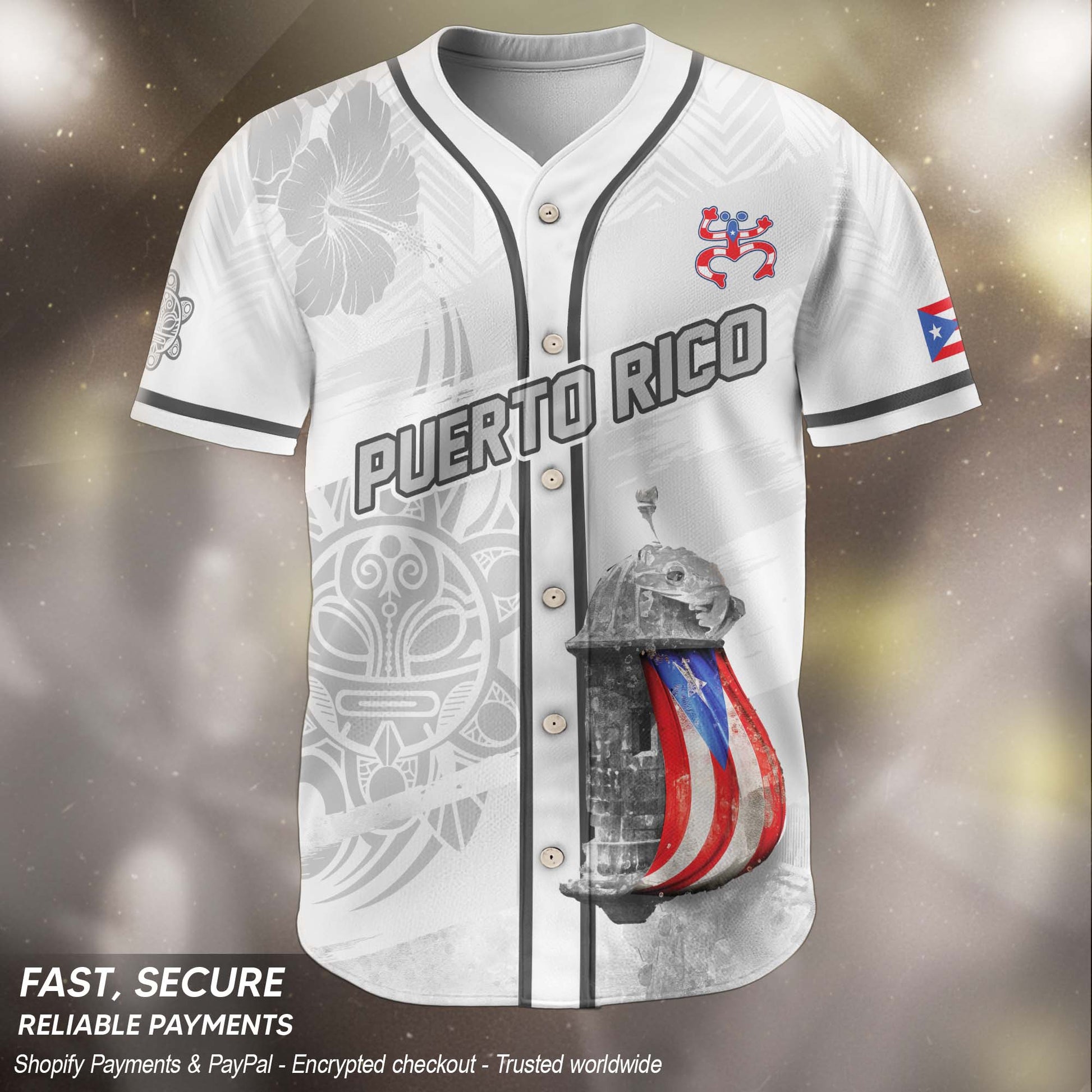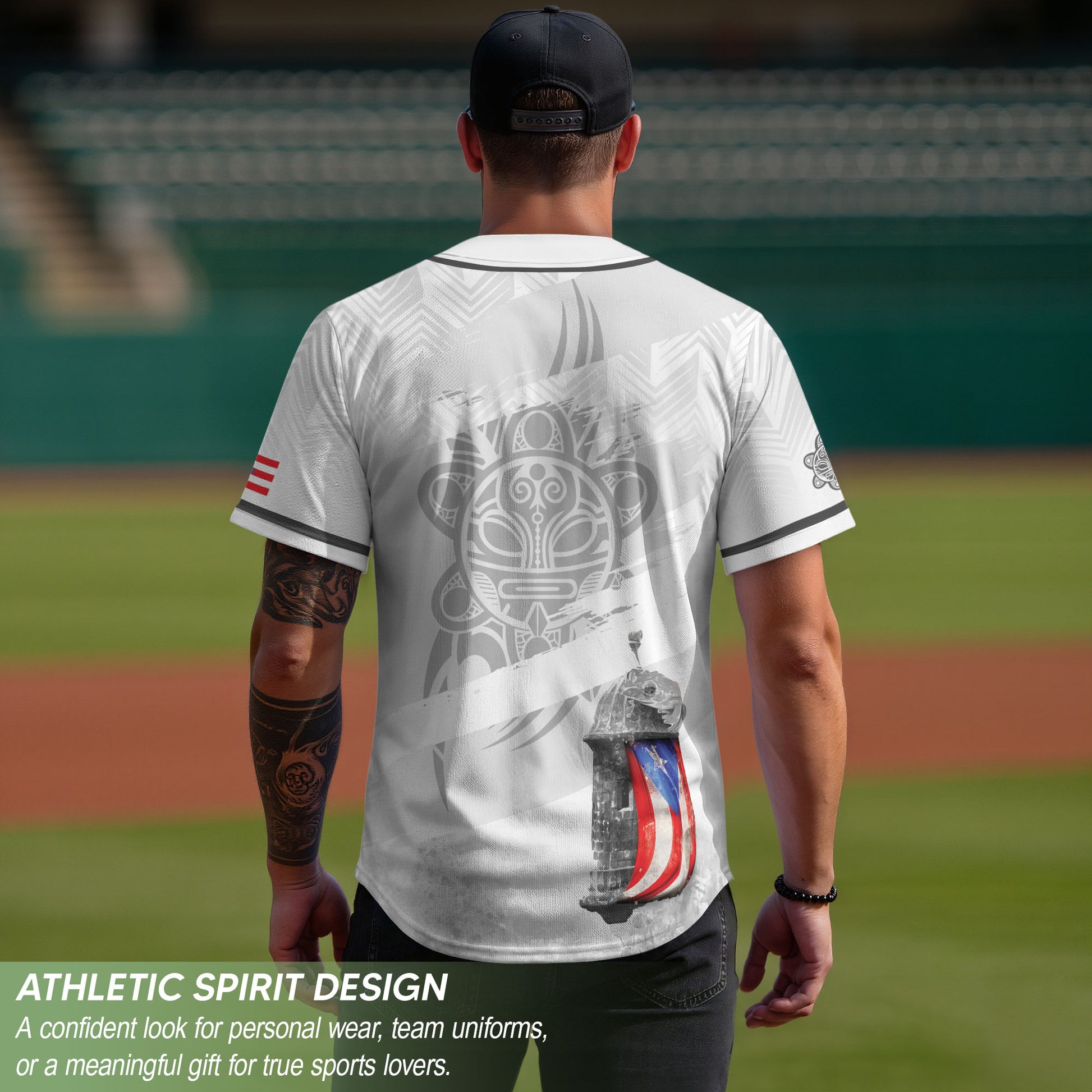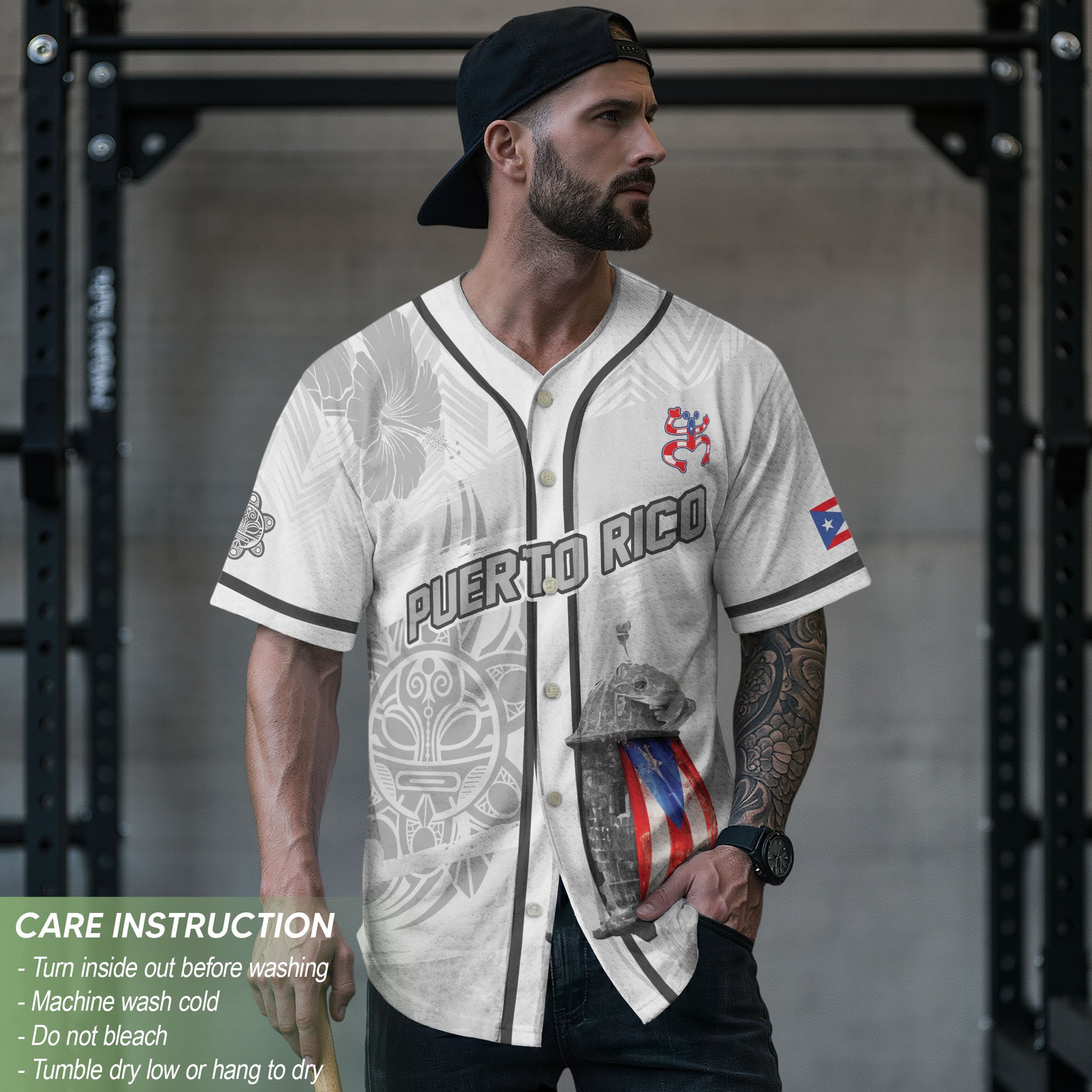 Puerto Rico Boricua White Gray Fortress Hibiscus Tribal Graphic Baseball Jersey