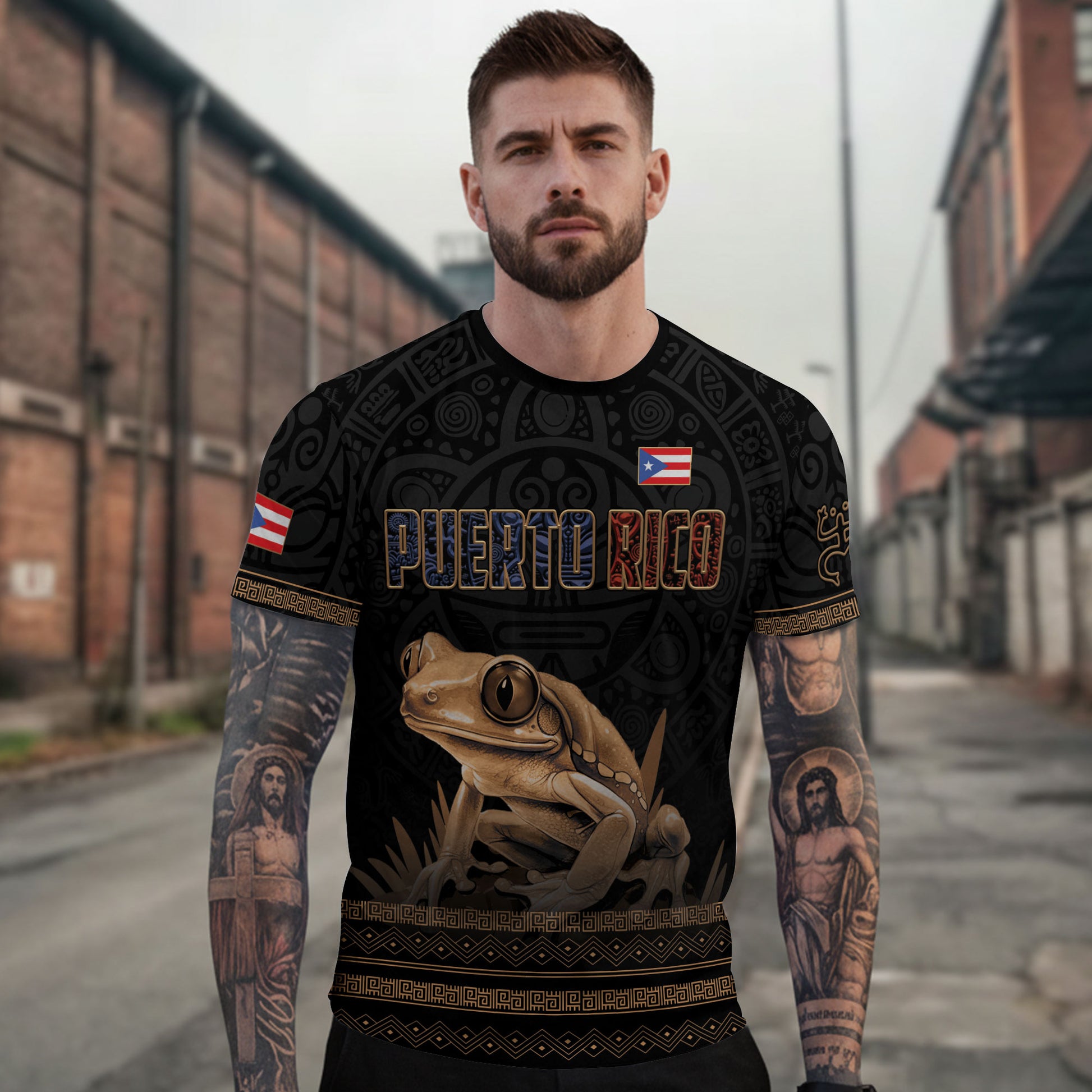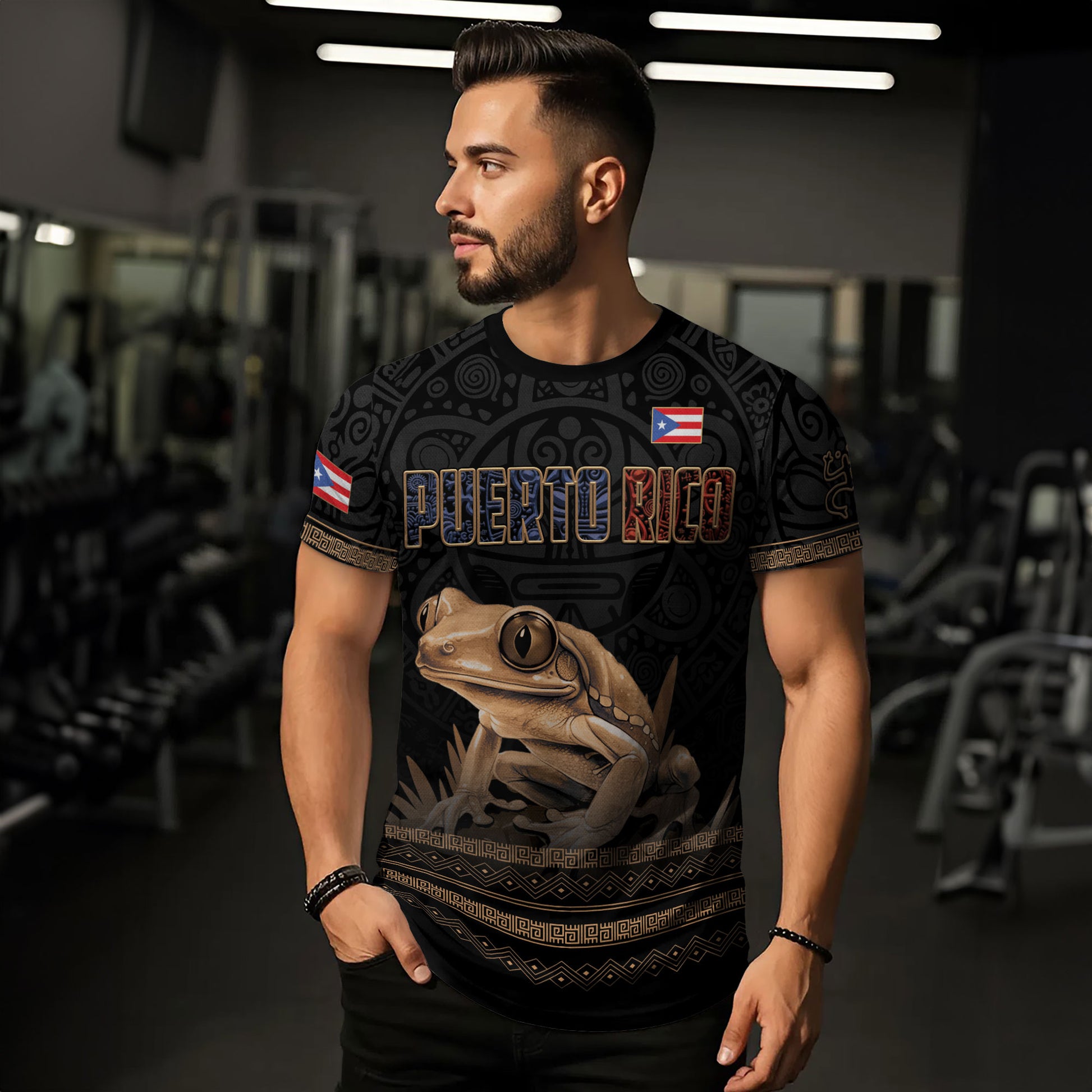 Puerto Rico Coqui Frog Taino Heritage Boricua Pride Tribal Culture Pattern Shirt