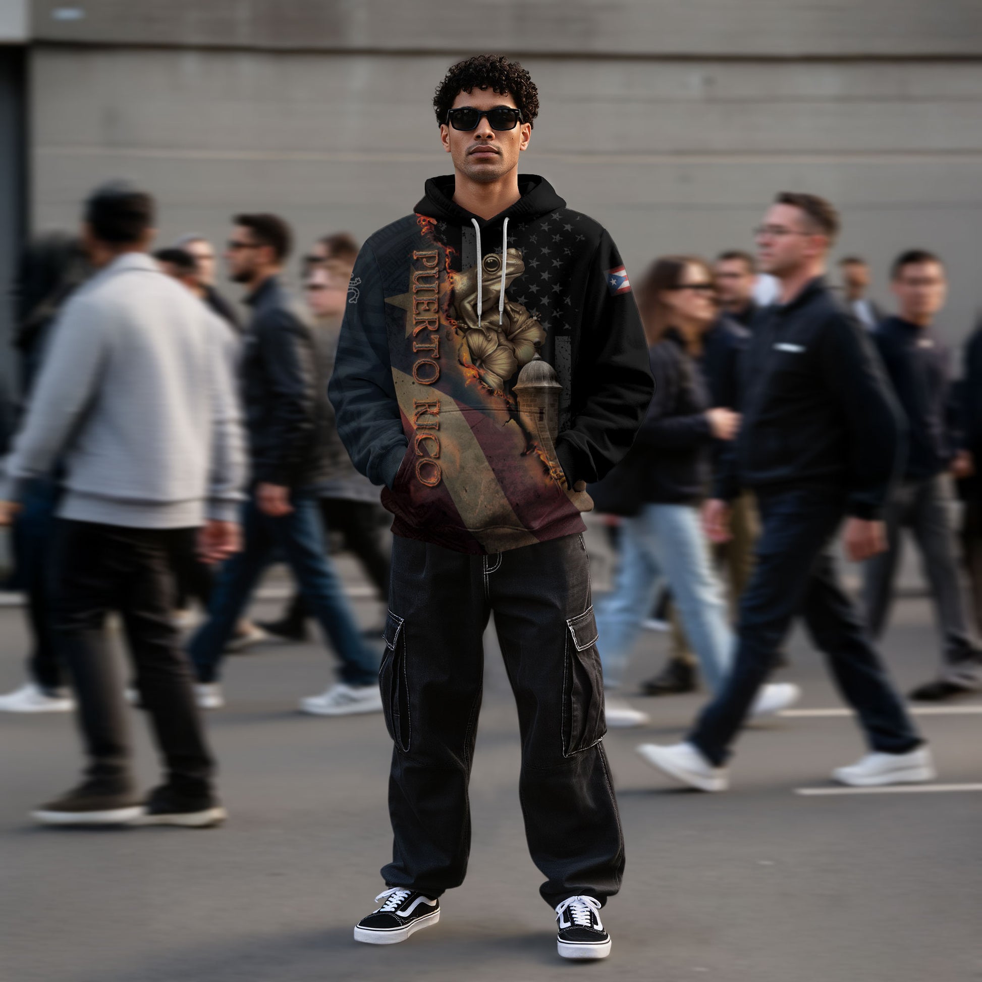 Honor island history with this Puerto Rico Flag Hoodie featuring the coquí frog, El Morro fortress, and Taíno heritage artwork. Soft and comfortable, it’s a meaningful choice for everyday wear or as a cultural statement piece.