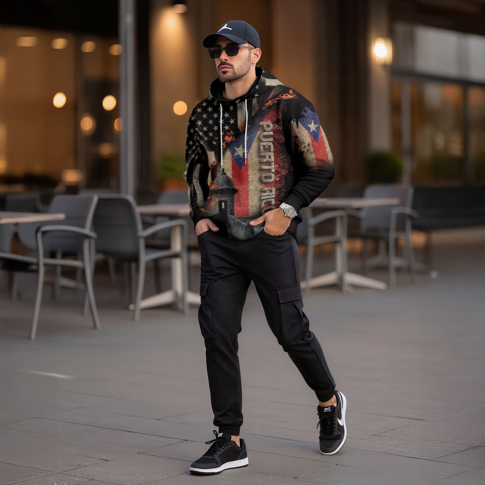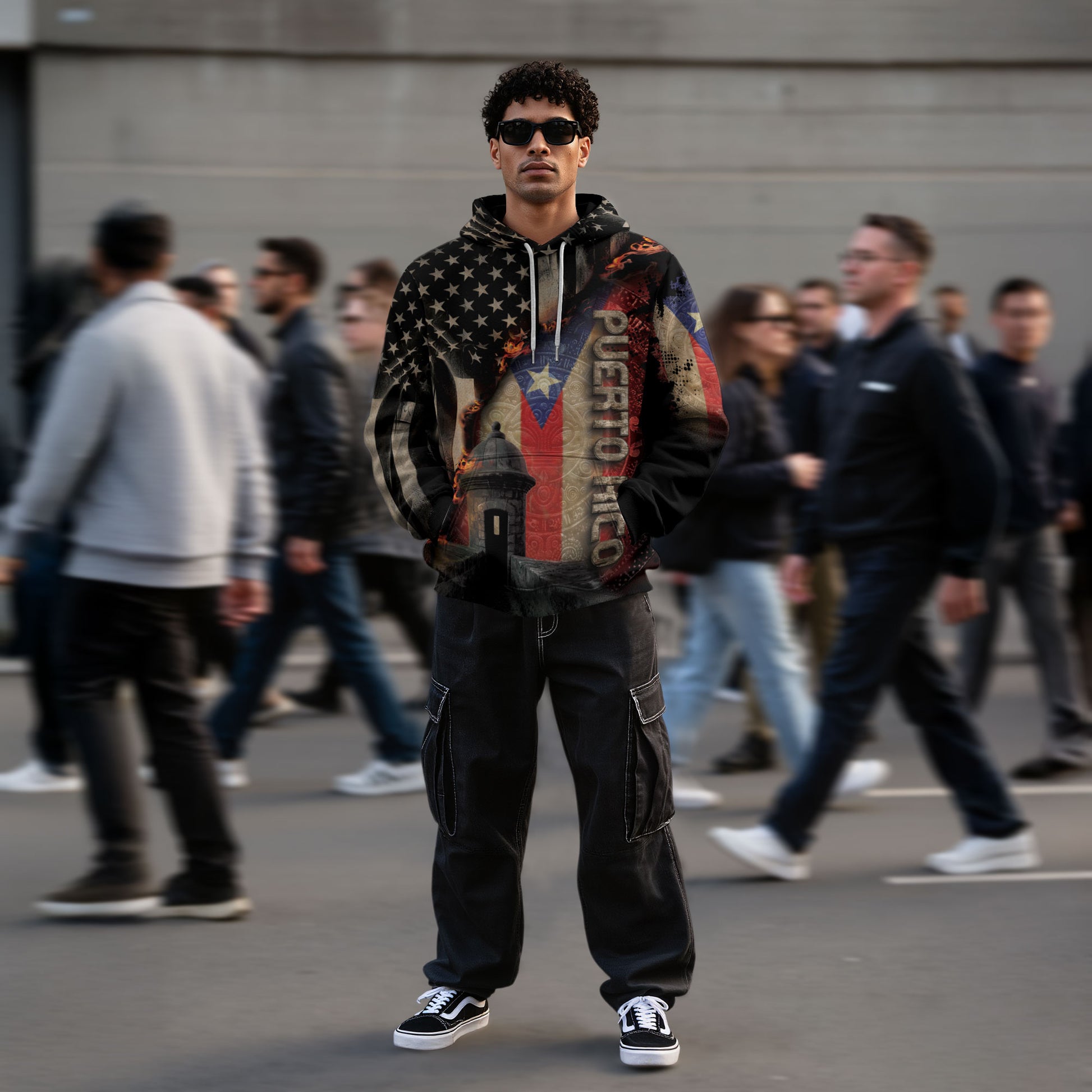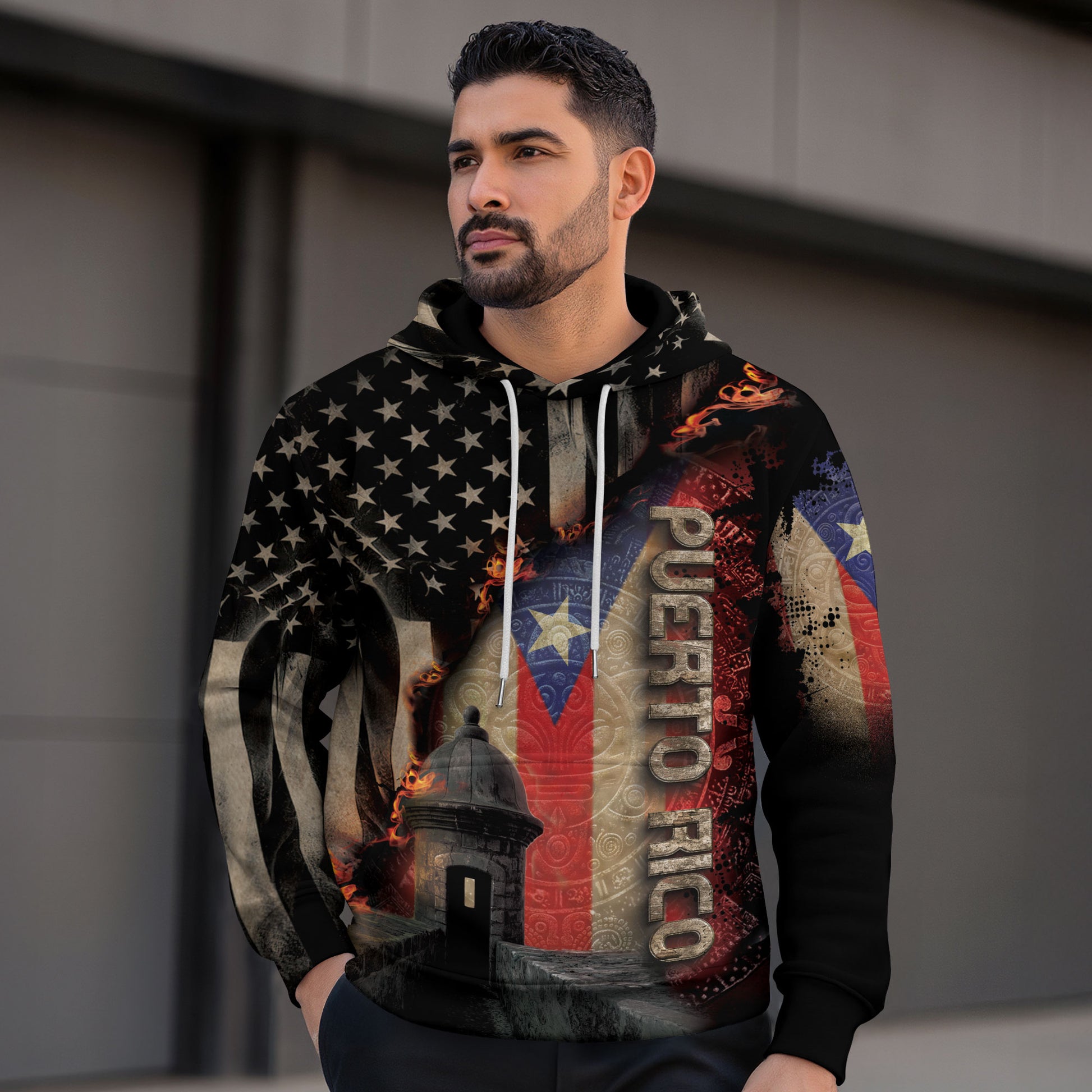 Puerto Rico USA Flag Boricua El Morro Taino Tribal Black Gold Heritage Hoodie