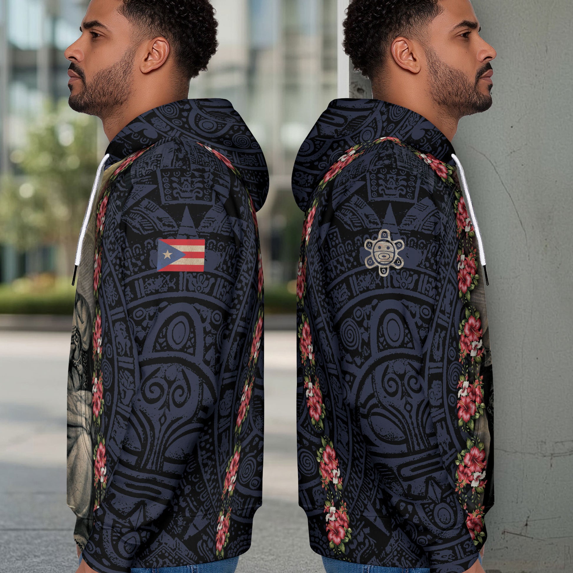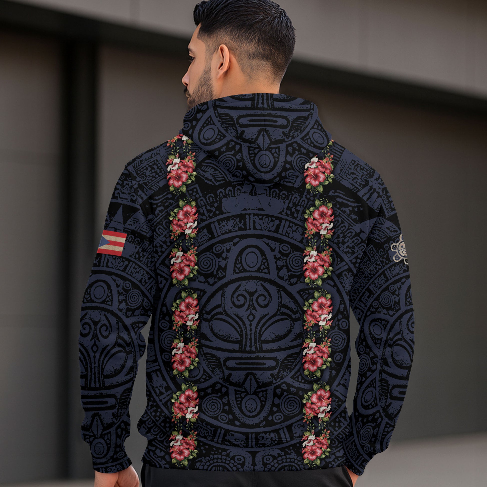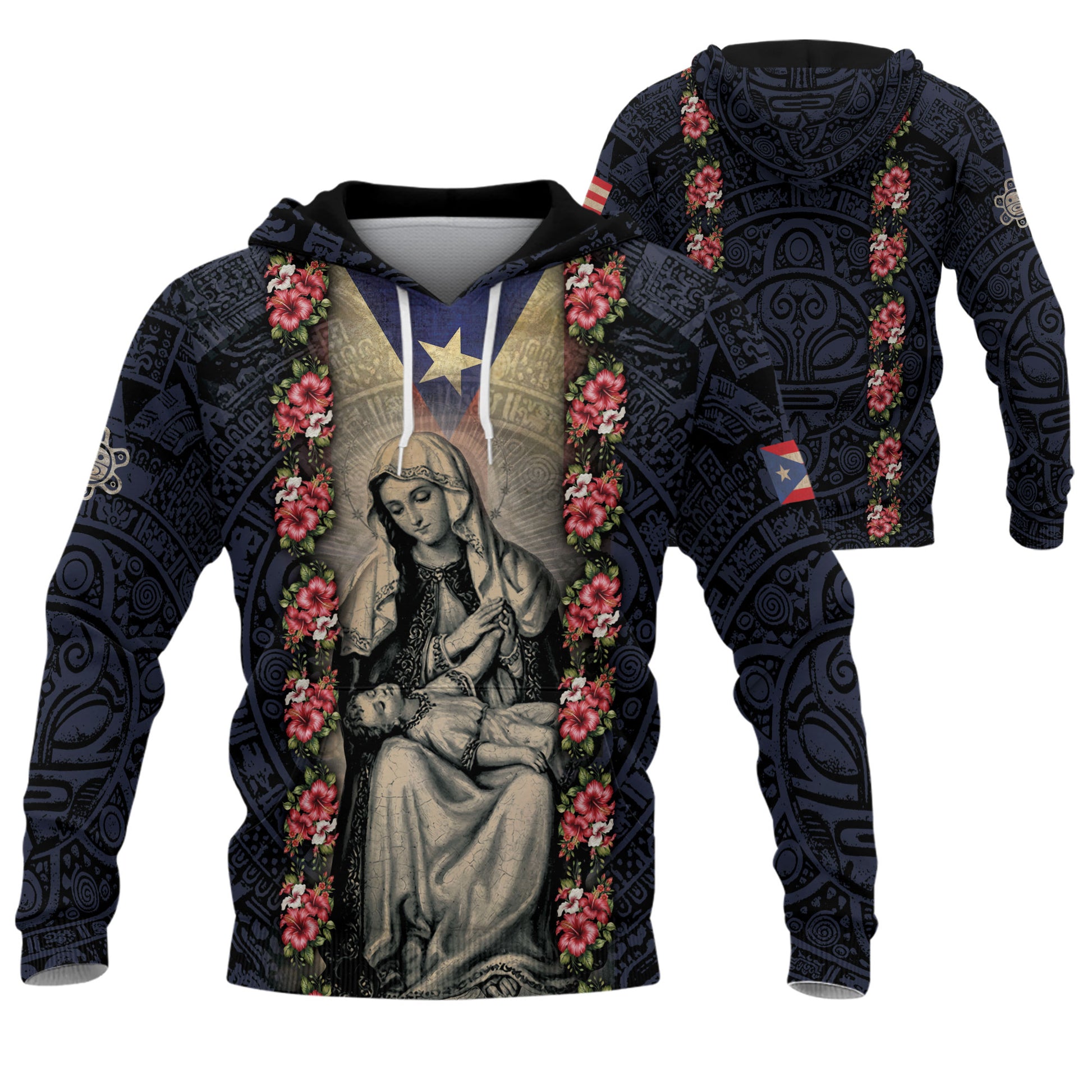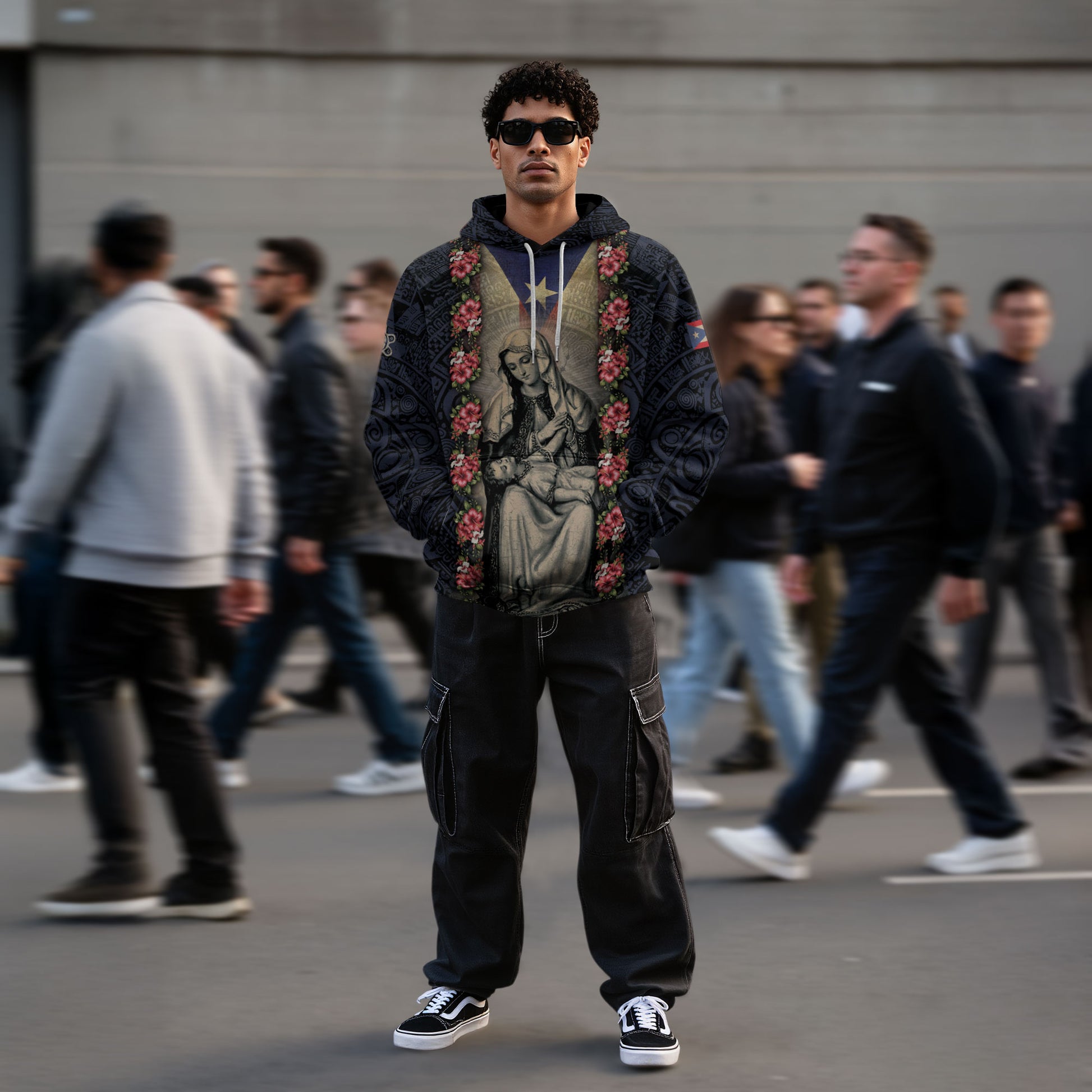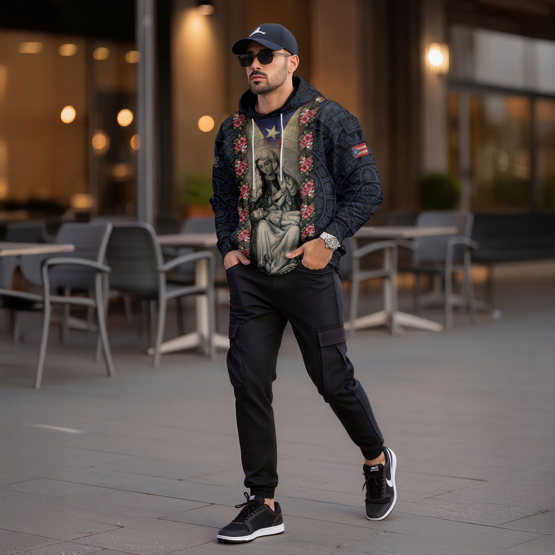 Puerto Rico Flag Boricua Virgin Mary Hibiscus Black Navy Tribal Heritage Hoodie