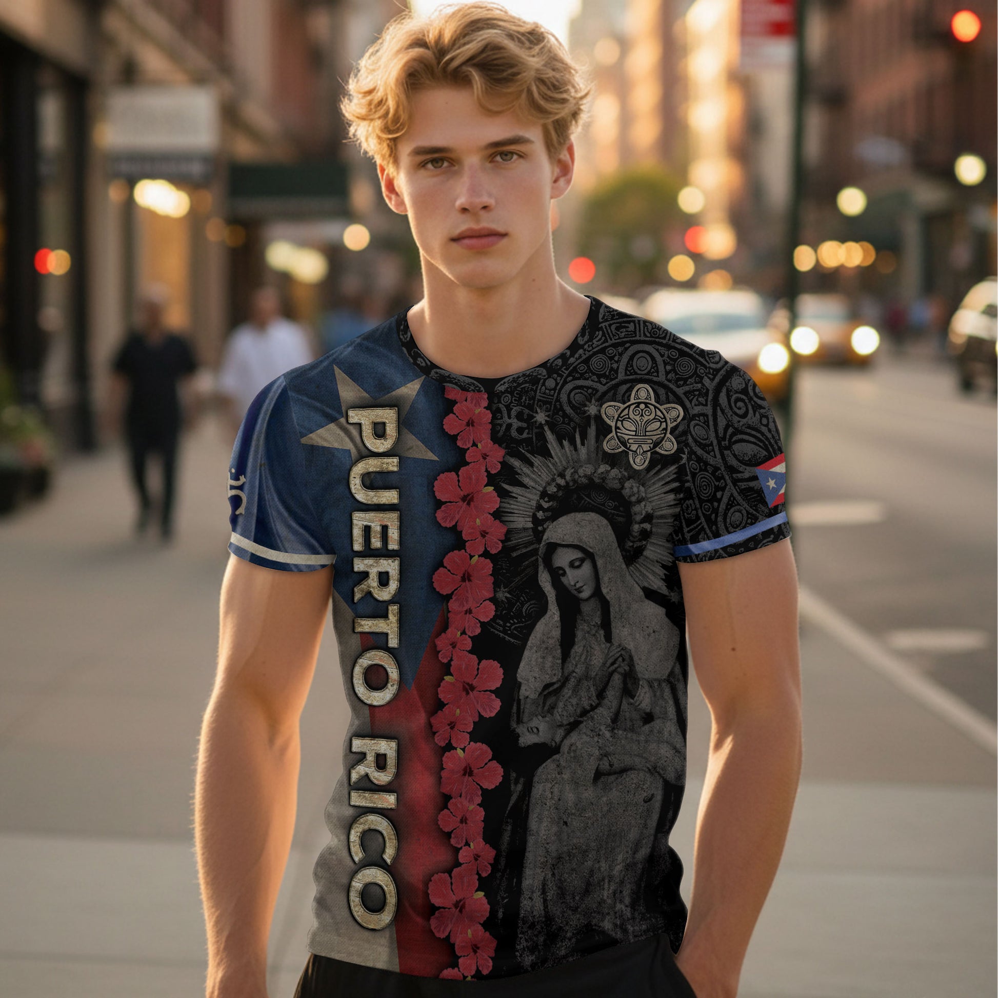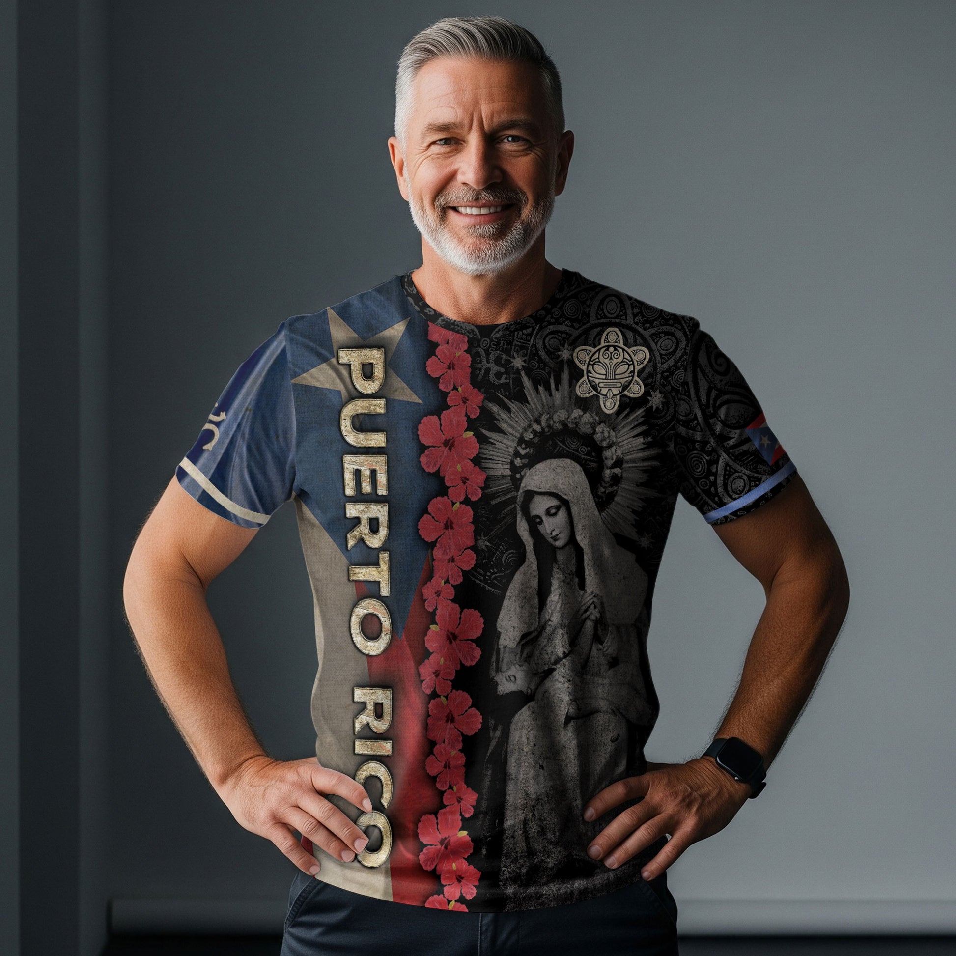 Puerto Rico Flag Virgin Mary Hibiscus Taino Heritage Pride Faith Boricua Shirt